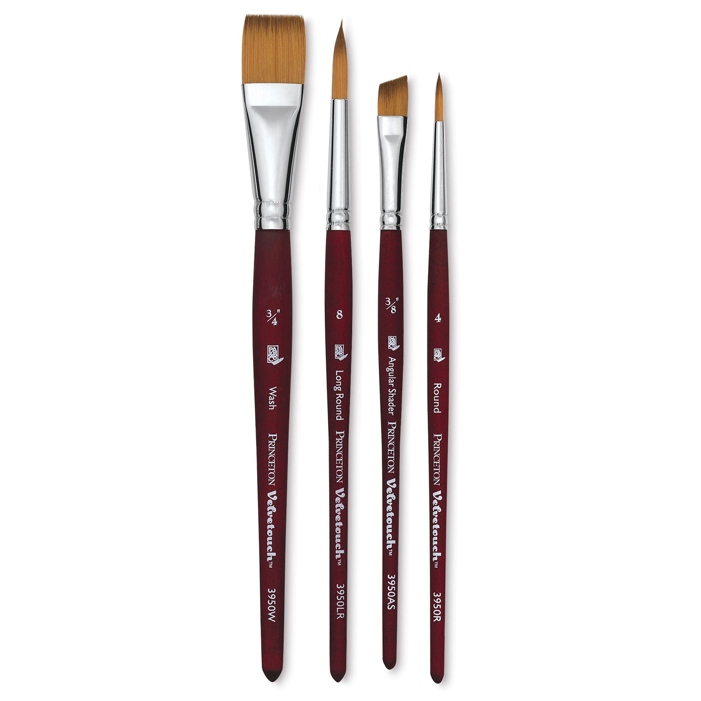 View Product DetailsPrinceton Velvetouch Series 3950 Synthetic Brushes - Set of 4, Out of Packaging, Brushes Straight