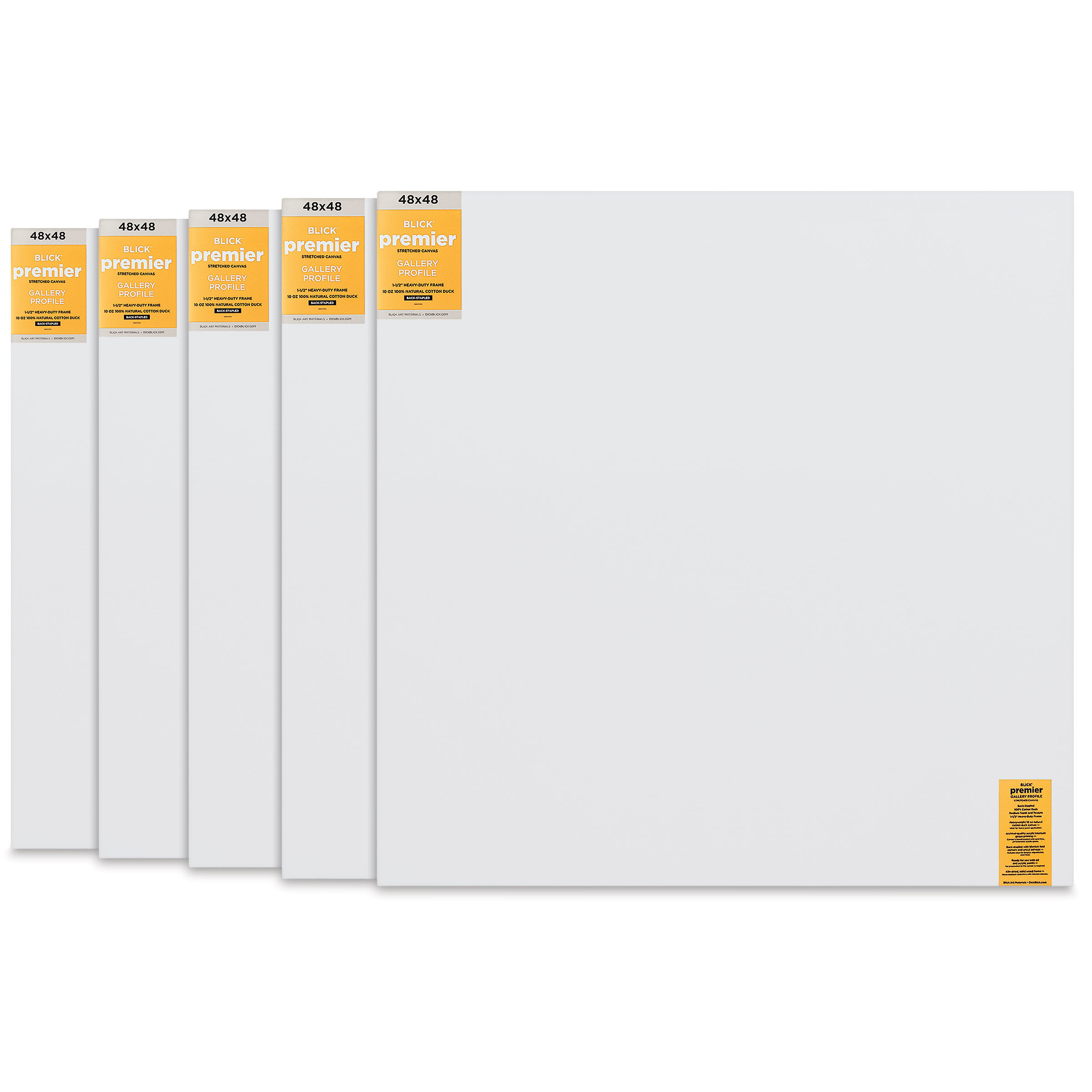 Blick Premier Stretched Cotton Canvas - Gallery Profile, Back-Stapled, 48" x 48", Pkg of 5