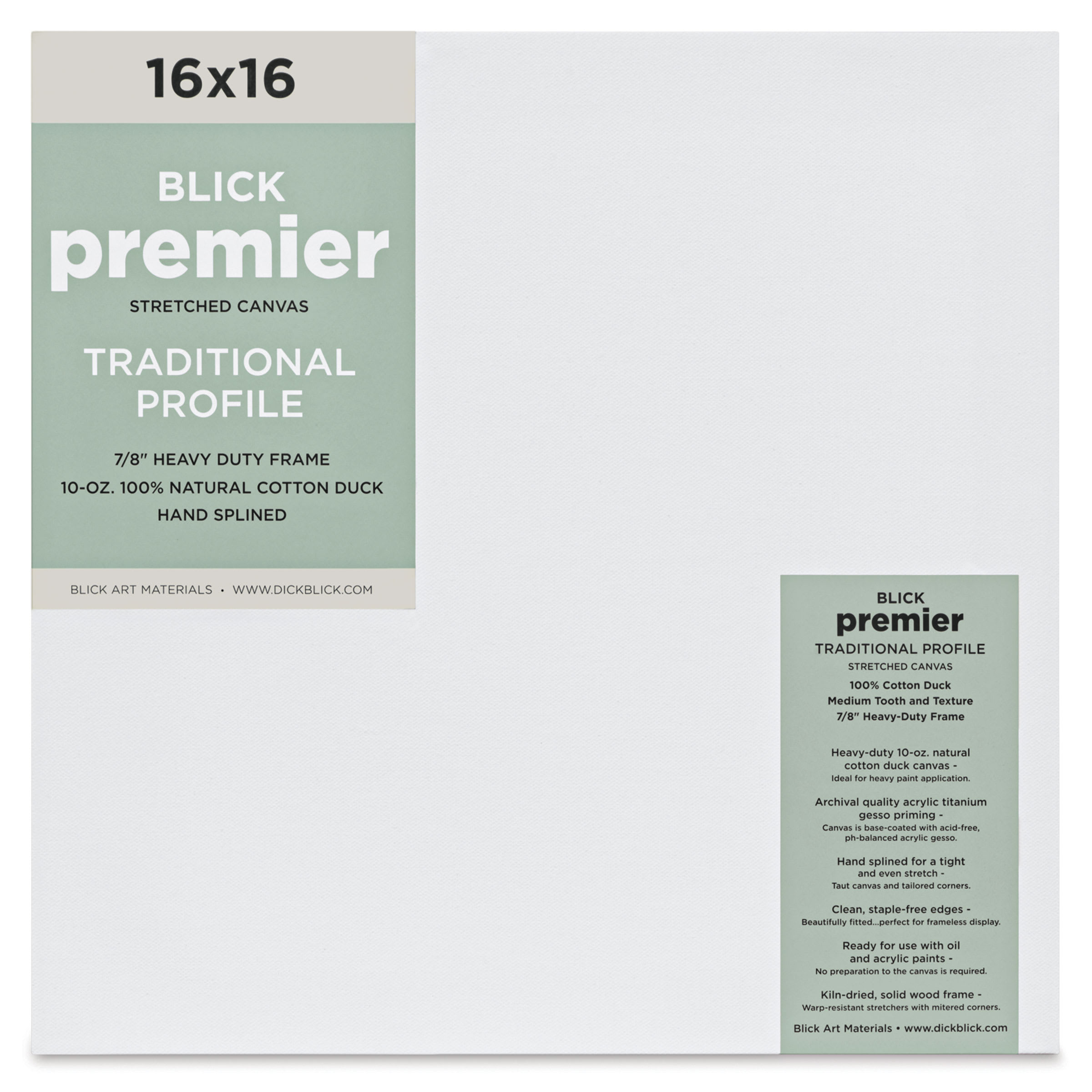 View Product DetailsBlick Premier Stretched Cotton Canvas - Traditional Profile, Splined, 16" x 16", front