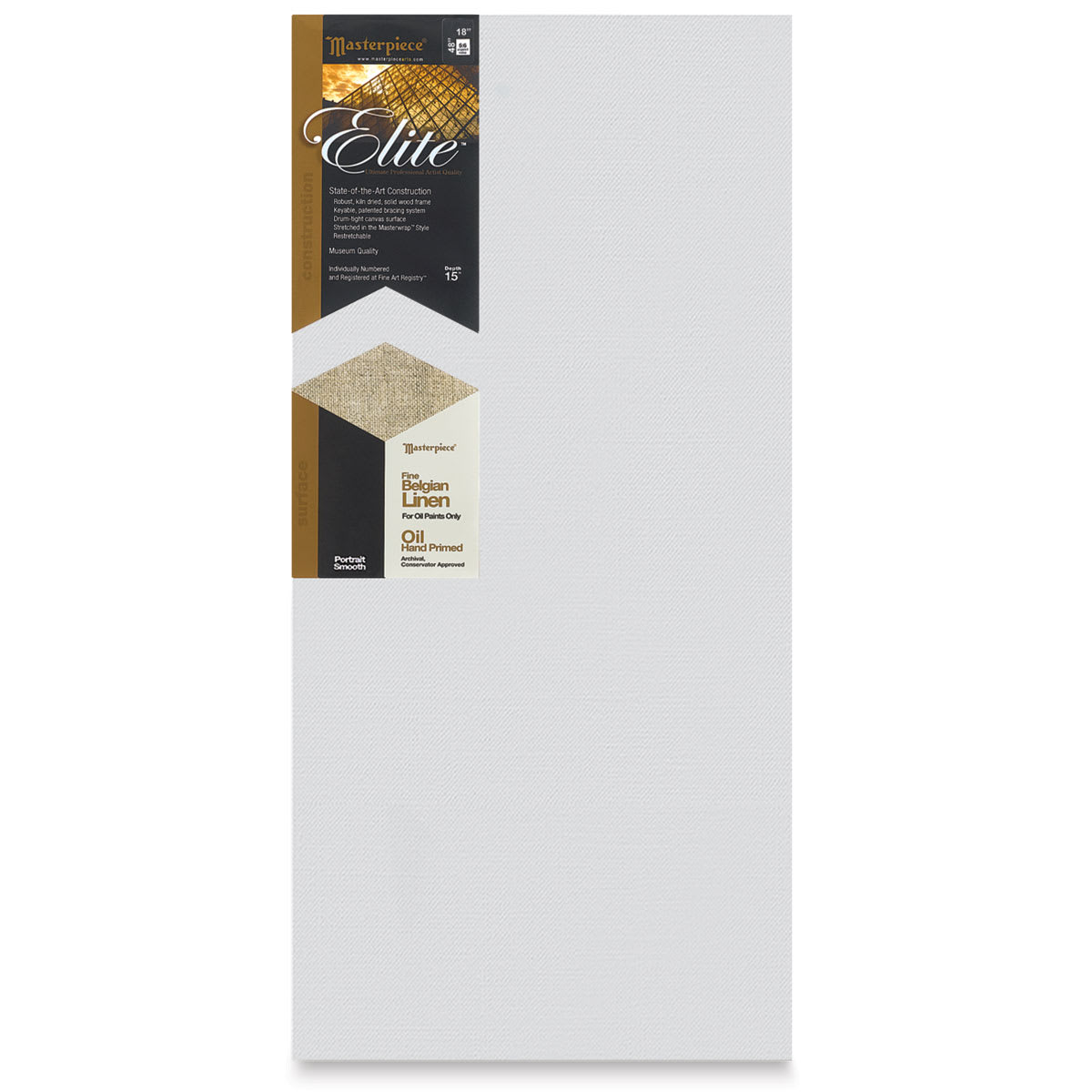 View Product DetailsMasterpiece Elite Portrait Smooth Canvas - 18" x 48", Oil Primed