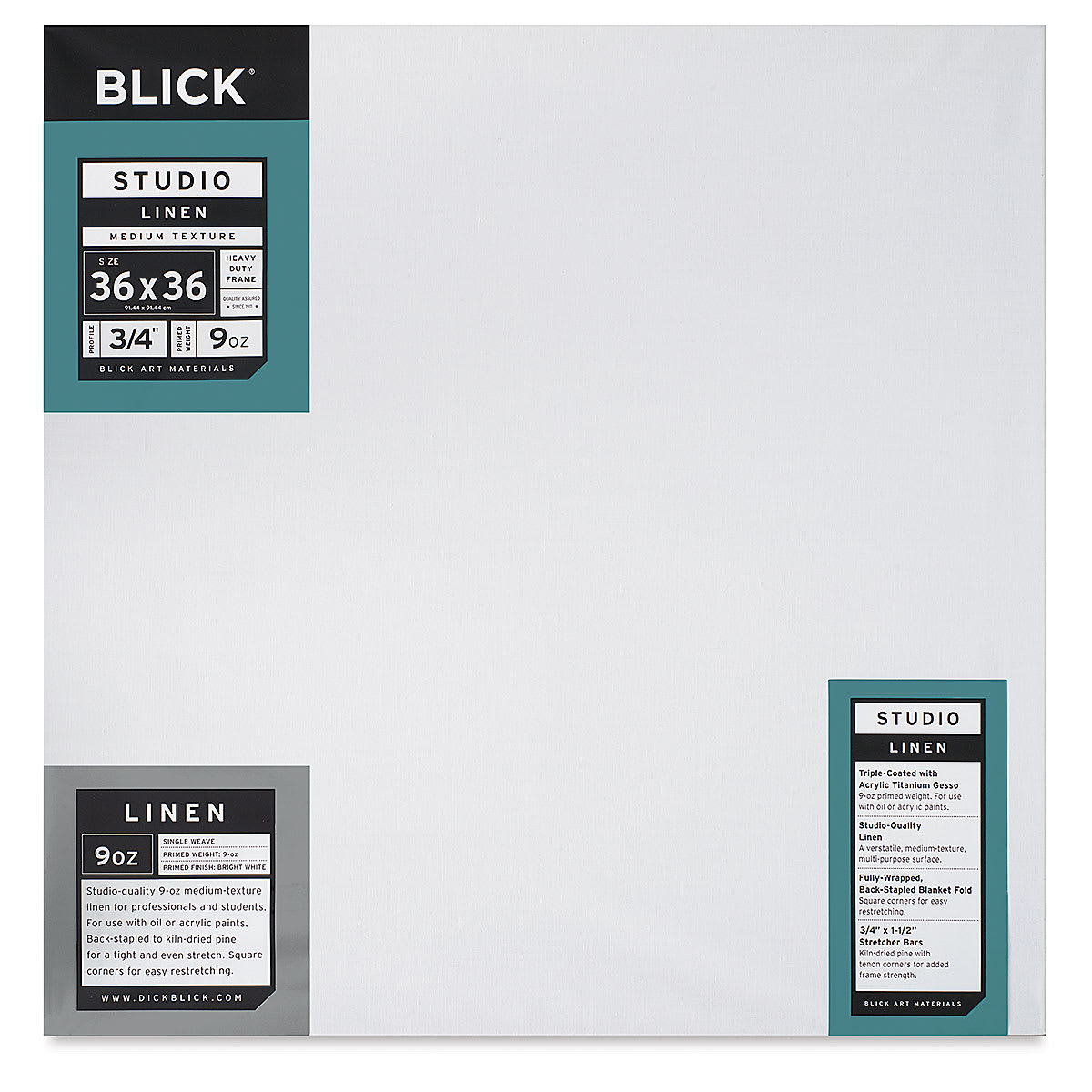 View Product DetailsBlick Studio Linen Stretched Canvas - 36" x 36", Traditional 3/4" Profile