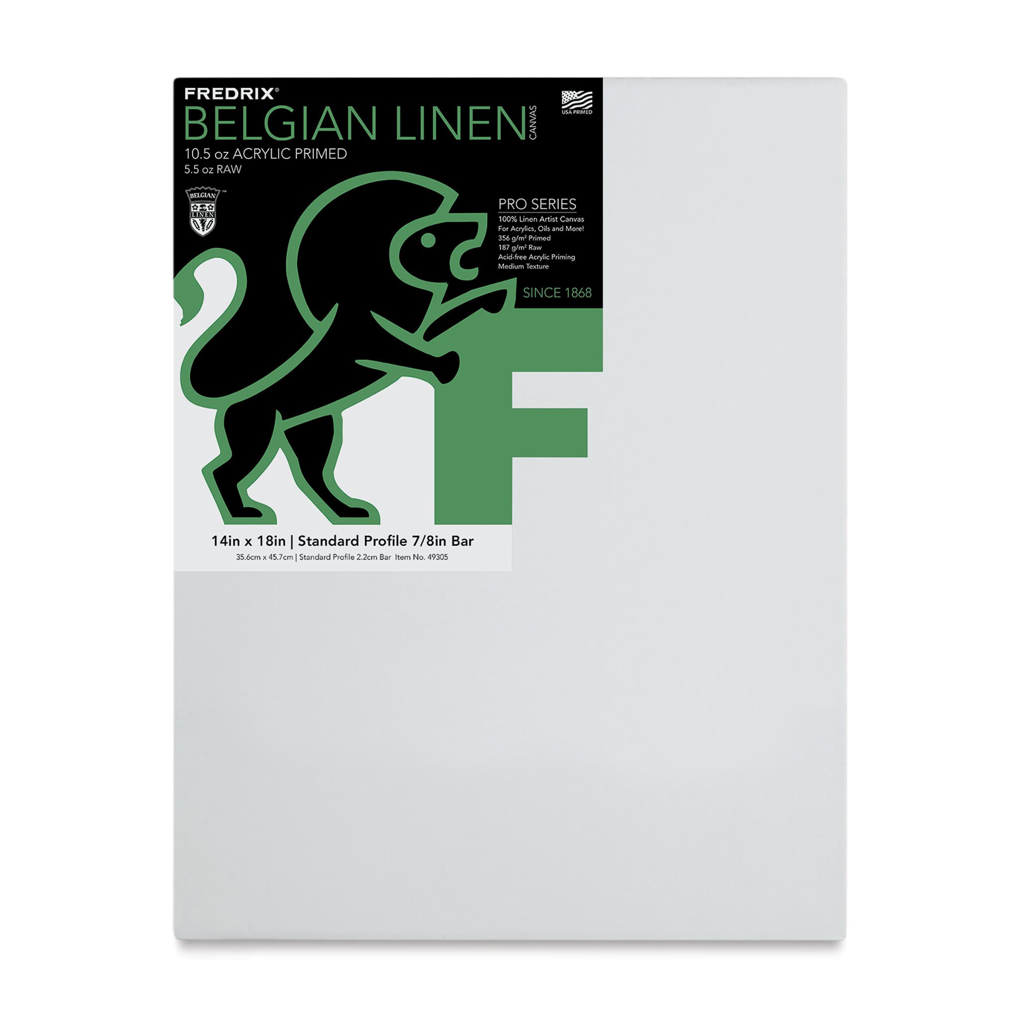 View Product DetailsFredrix Pro Series Traditional Profile Belgian Linen Canvas - 14" x 18", Acrylic Primed