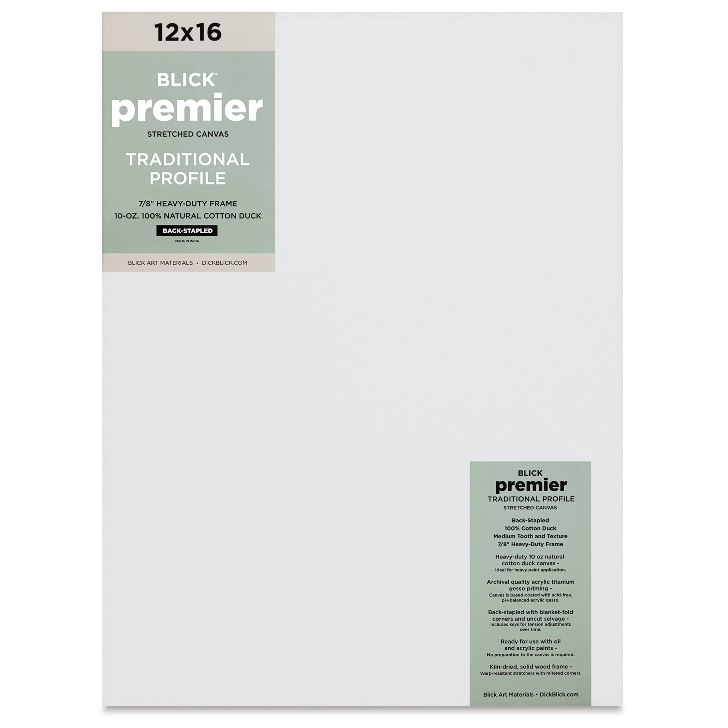 View Product DetailsBlick Premier Stretched Cotton Canvas - Traditional Profile, Back-Stapled, 12" x 16", front