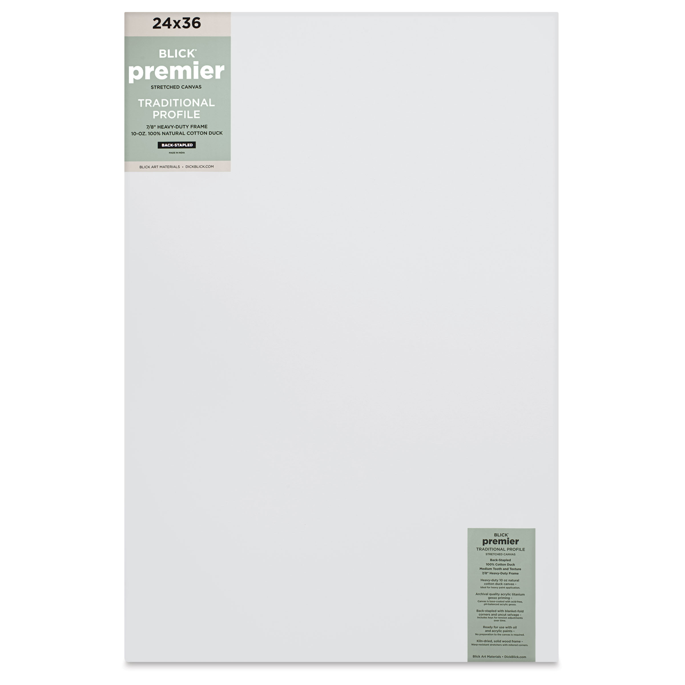 View Product DetailsBlick Premier Stretched Cotton Canvas - Traditional Profile, Back-Stapled, 24" x 36", front