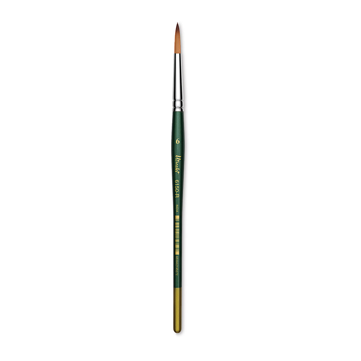 Utrecht Series 6150 Synthetic Golden Taklon Watercolor Brush - Round, Size 6, Short Handle