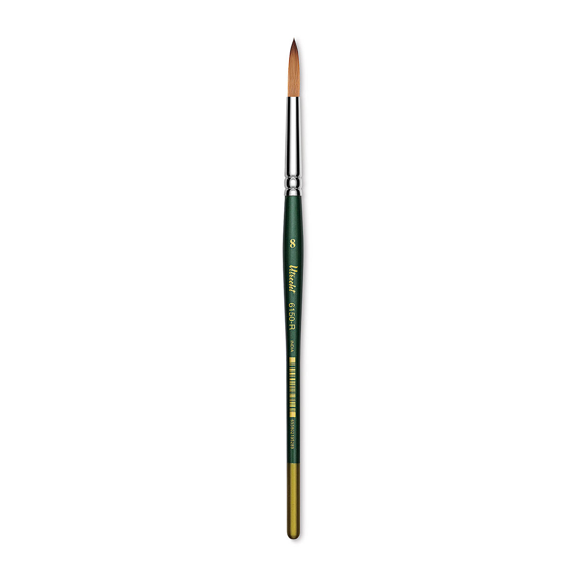 Utrecht Series 6150 Synthetic Golden Taklon Watercolor Brush - Round, Size 8, Short Handle