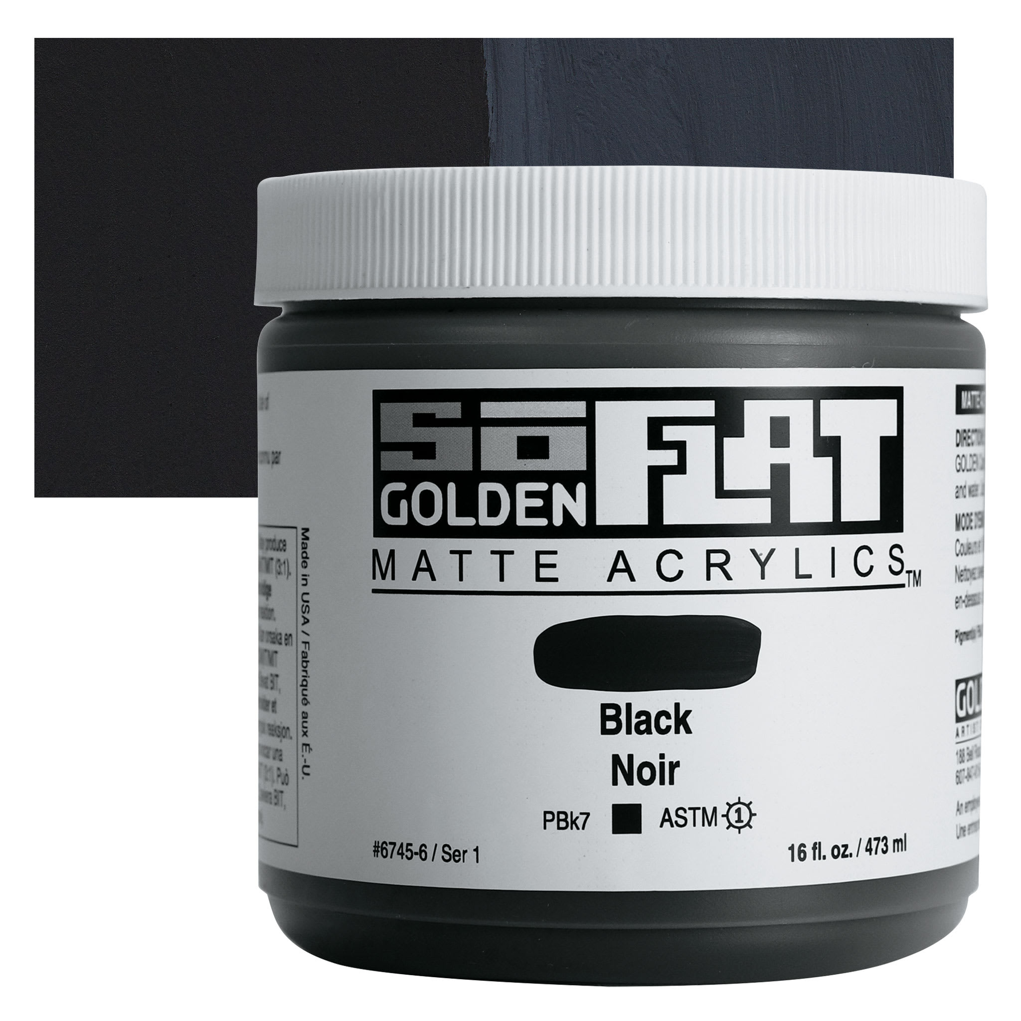 Golden SoFlat Matte Acrylic Paint - Black, 473 ml, Jar