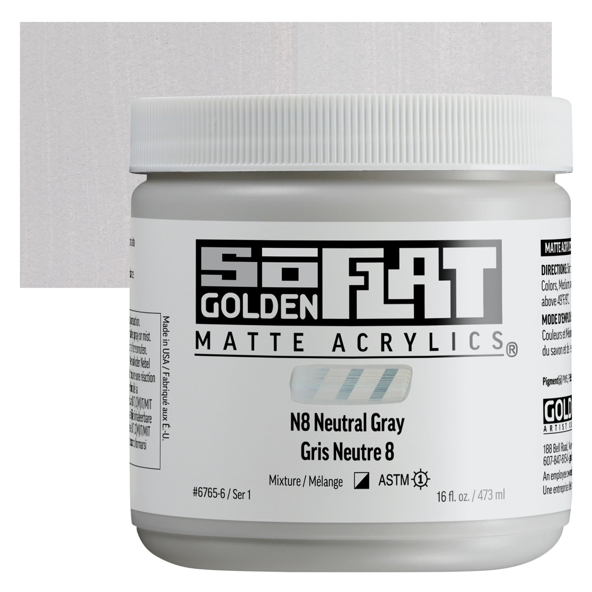 Golden SoFlat Matte Acrylic Paint - N8 Neutral Gray, 473 ml, Jar
