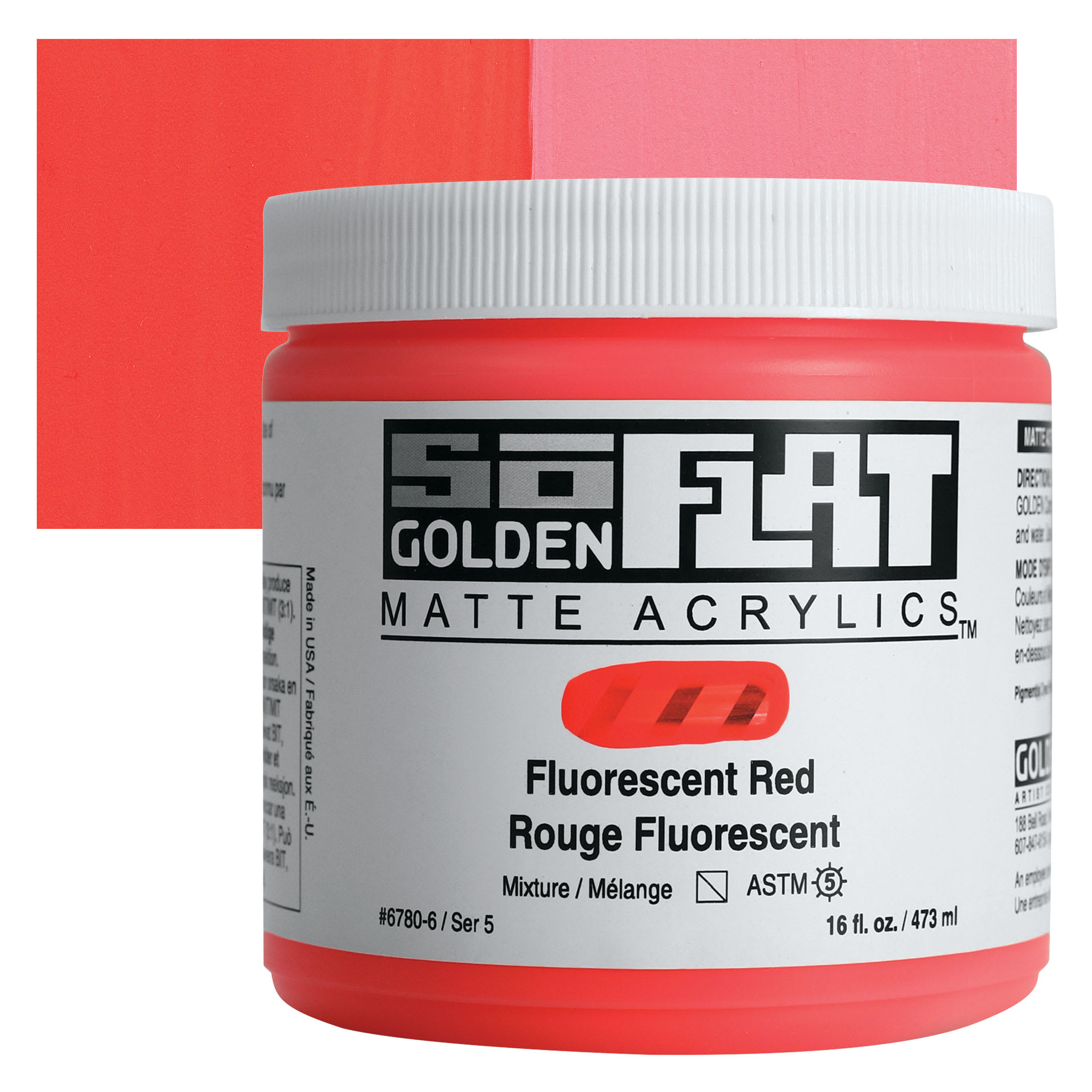 Golden SoFlat Matte Acrylic Paint - Fluorescent Red, 473 ml, Jar
