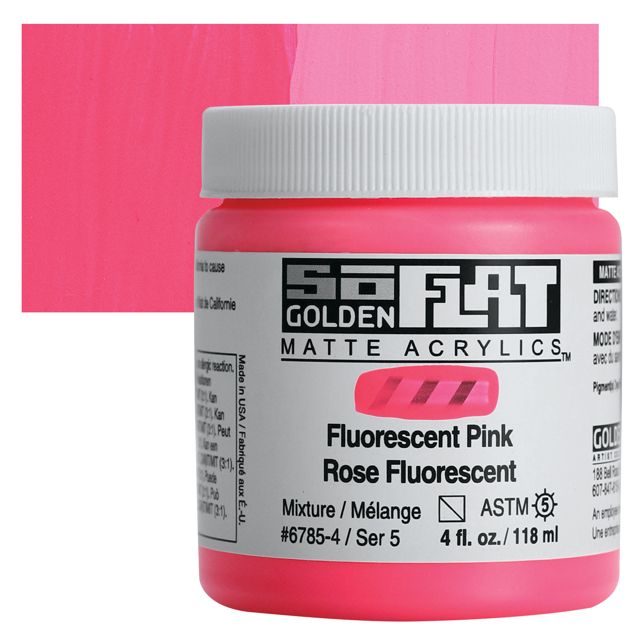 View Product DetailsGolden SoFlat Matte Acrylic Paint - Fluorescent Pink, 118 ml, Jar and swatch