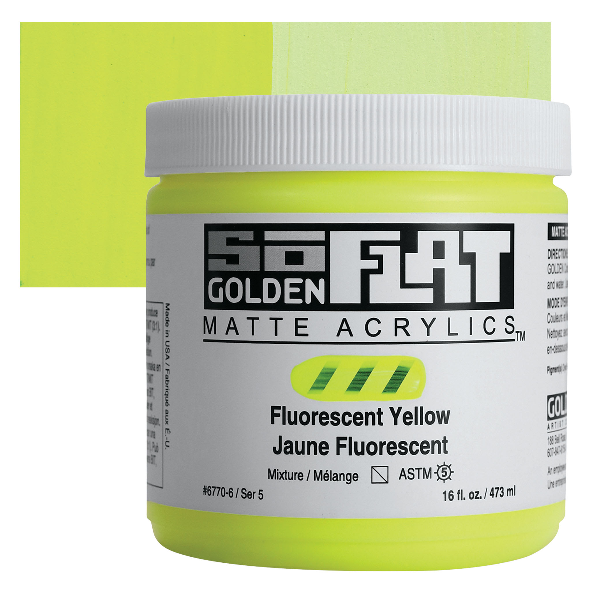 Golden SoFlat Matte Acrylic Paint - Fluorescent Yellow, 473 ml, Jar