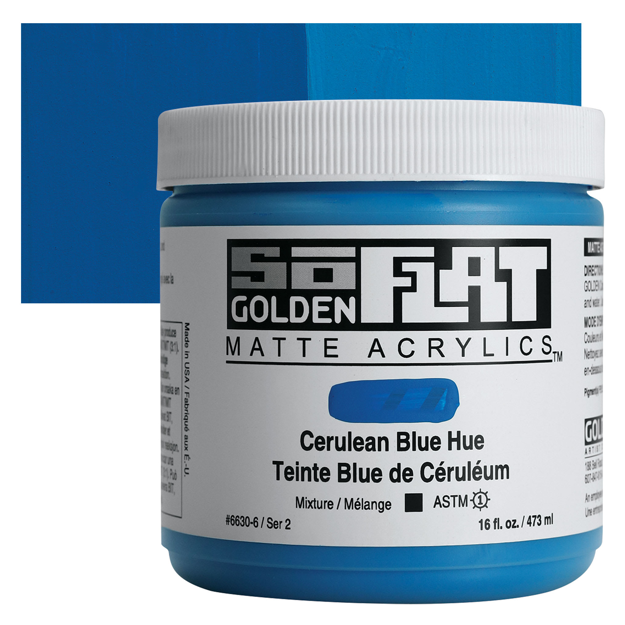 Golden SoFlat Matte Acrylic Paint - Cerulean Blue Hue, 473 ml, Jar