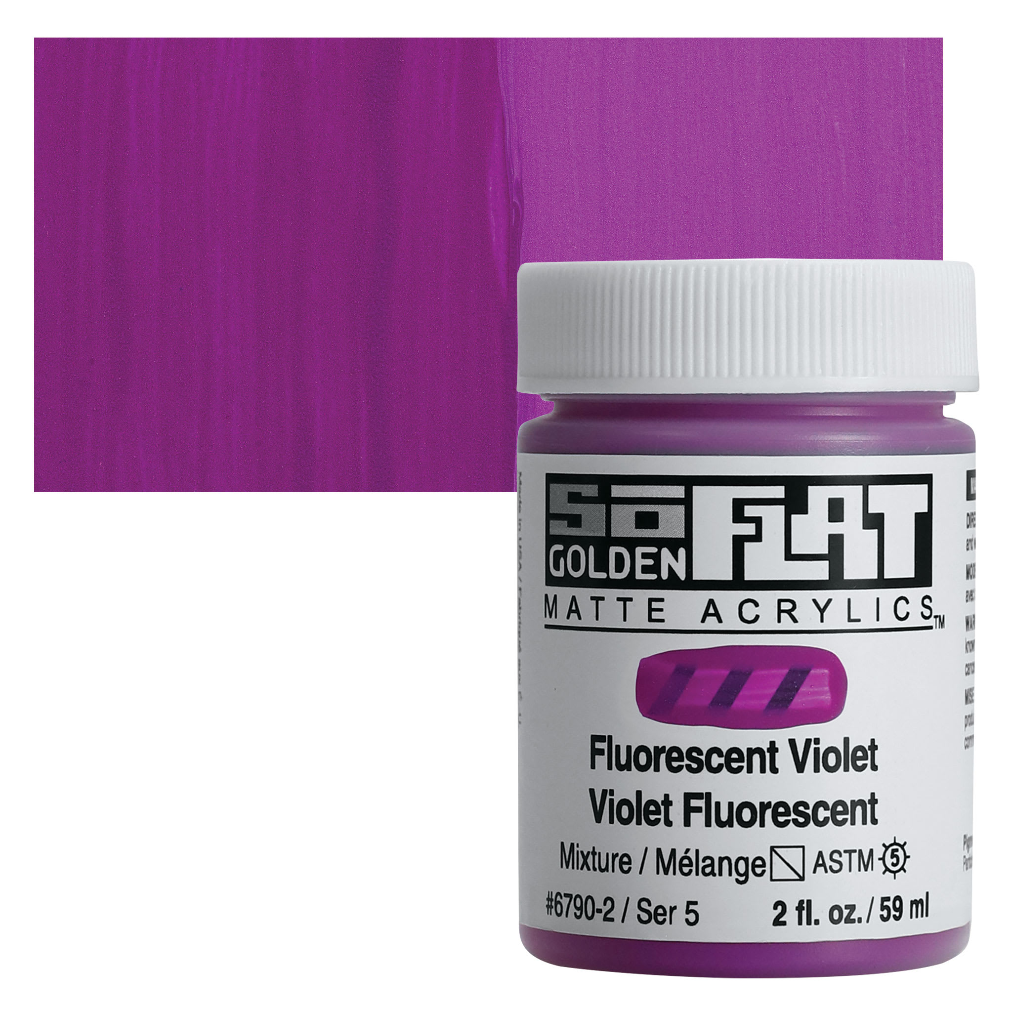 View Product DetailsGolden SoFlat Matte Acrylic Paint - Fluorescent Violet, 59 ml, Jar and swatch