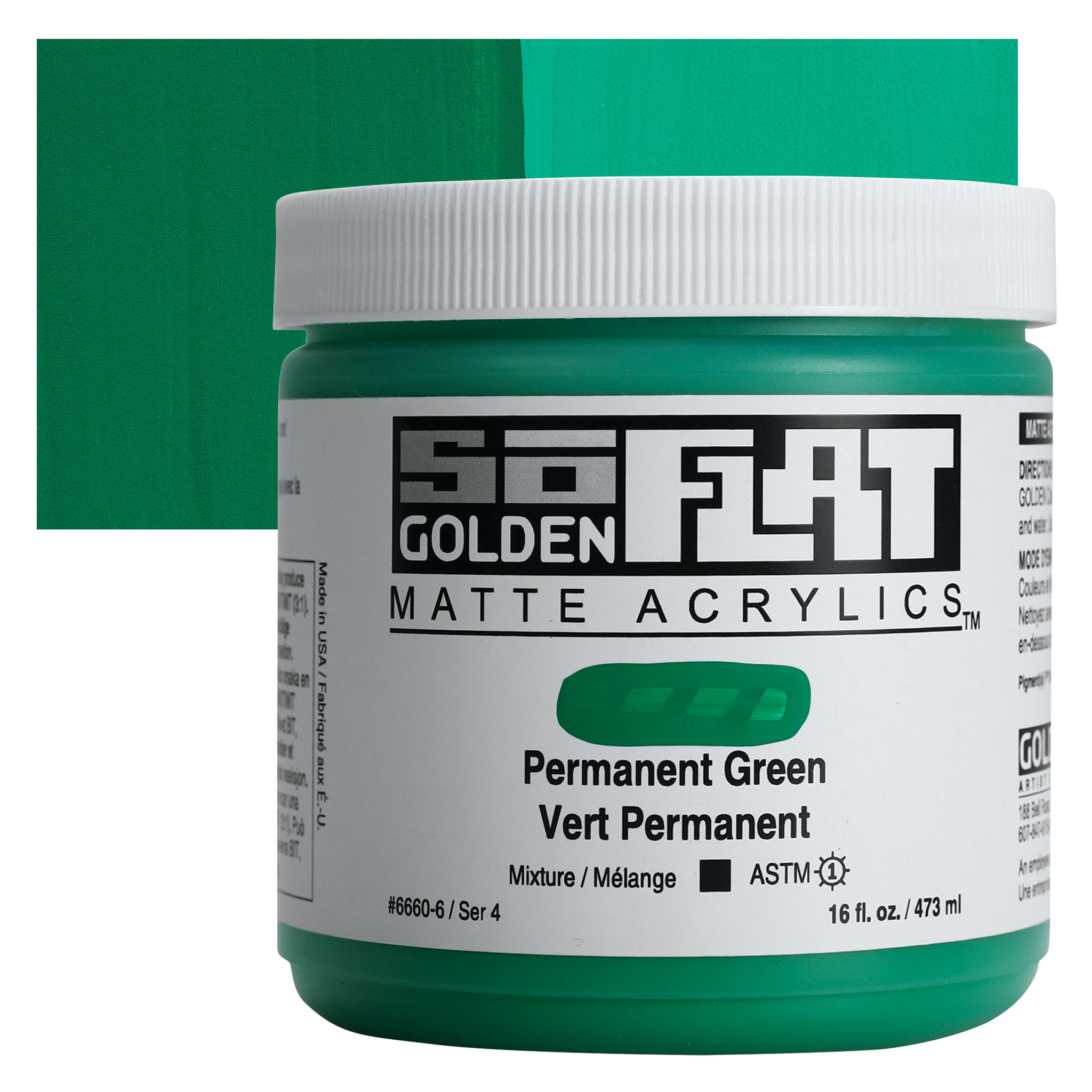 Golden SoFlat Matte Acrylic Paint - Permanent Green, 473 ml, Jar