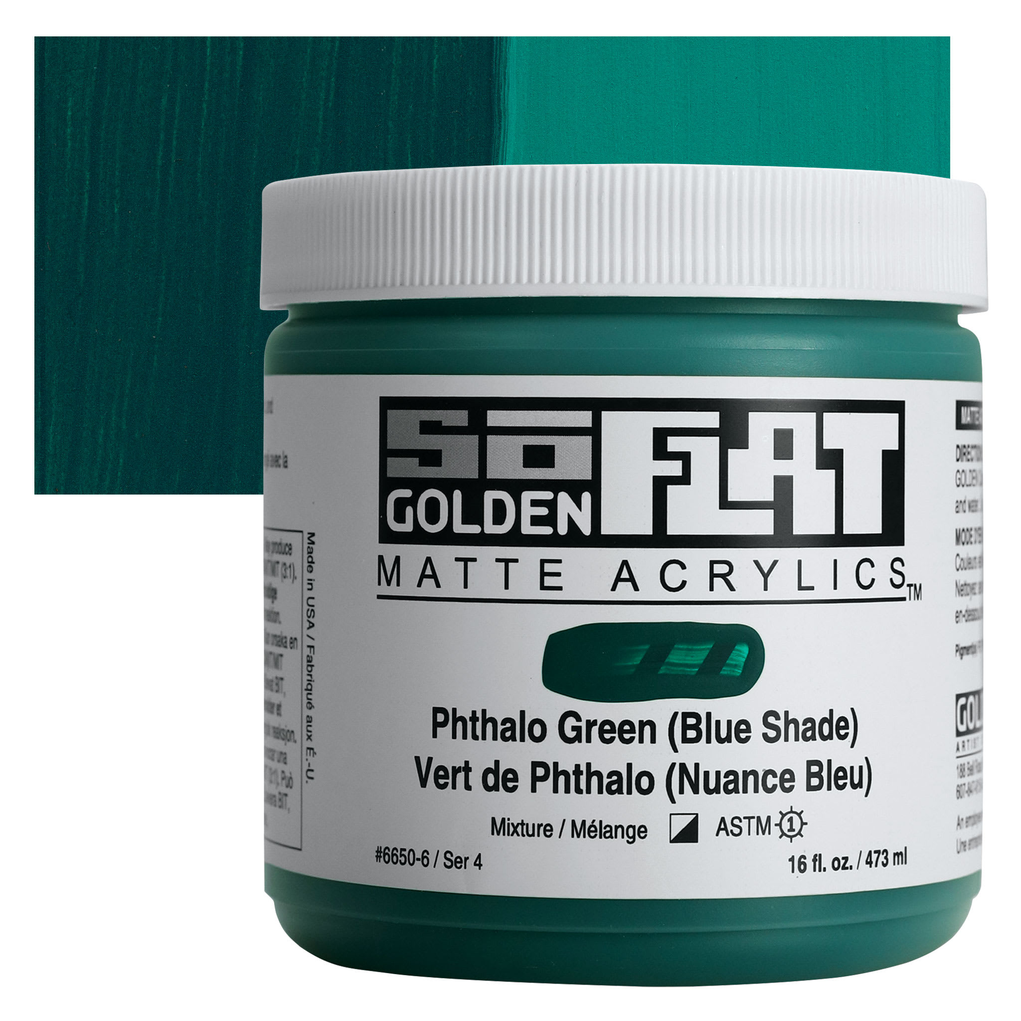 Golden SoFlat Matte Acrylic Paint - Phthalo Green (Blue Shade), 473 ml, Jar