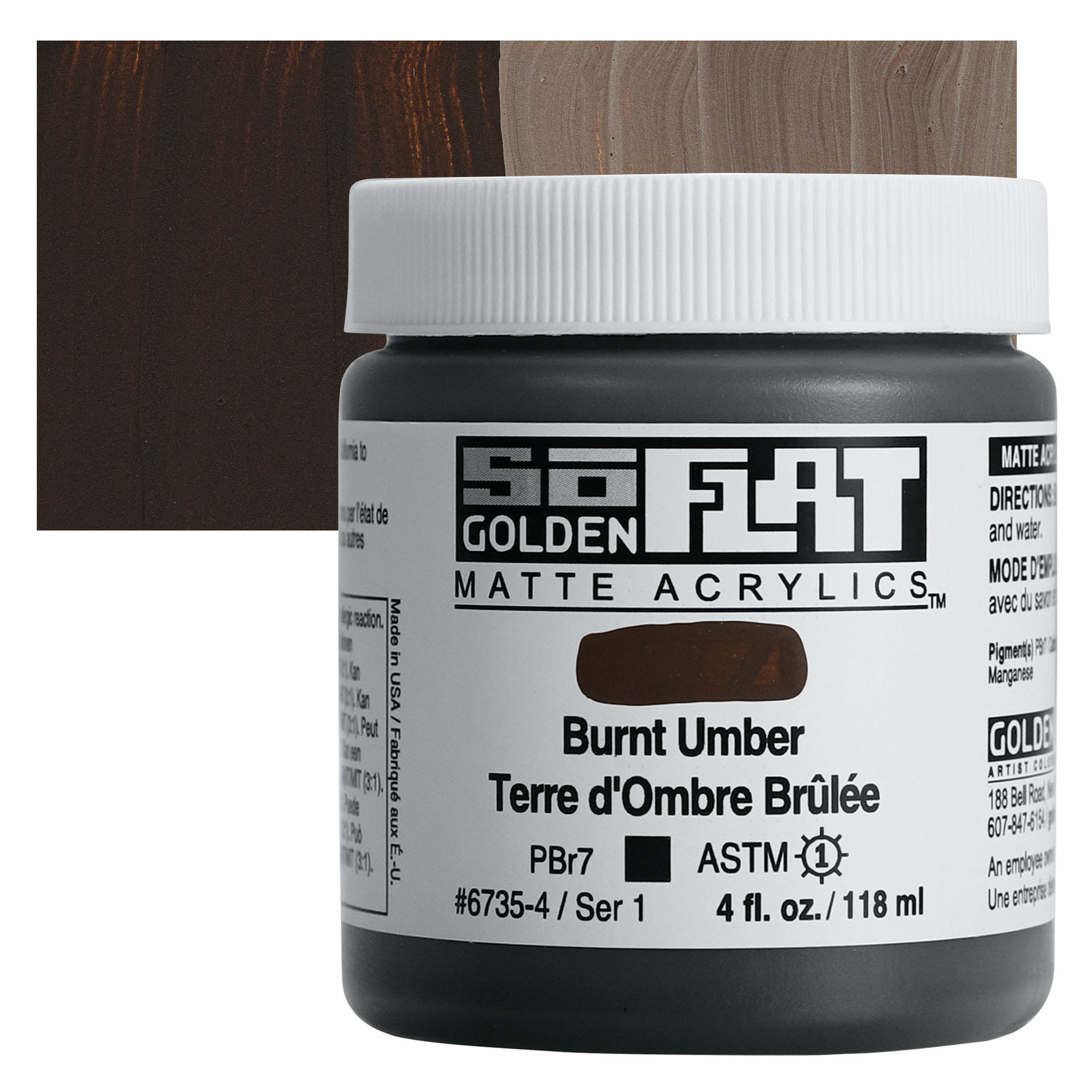 Golden SoFlat Matte Acrylic Paint - Burnt Umber, 118 ml, Jar