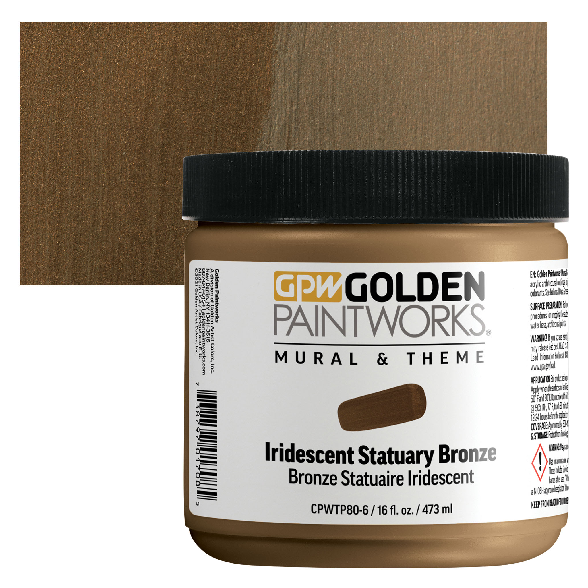 Golden Paintworks Mural and Theme Acrylic Paint - Iridescent Statuary Bronze, 16 oz, Jar and swatch