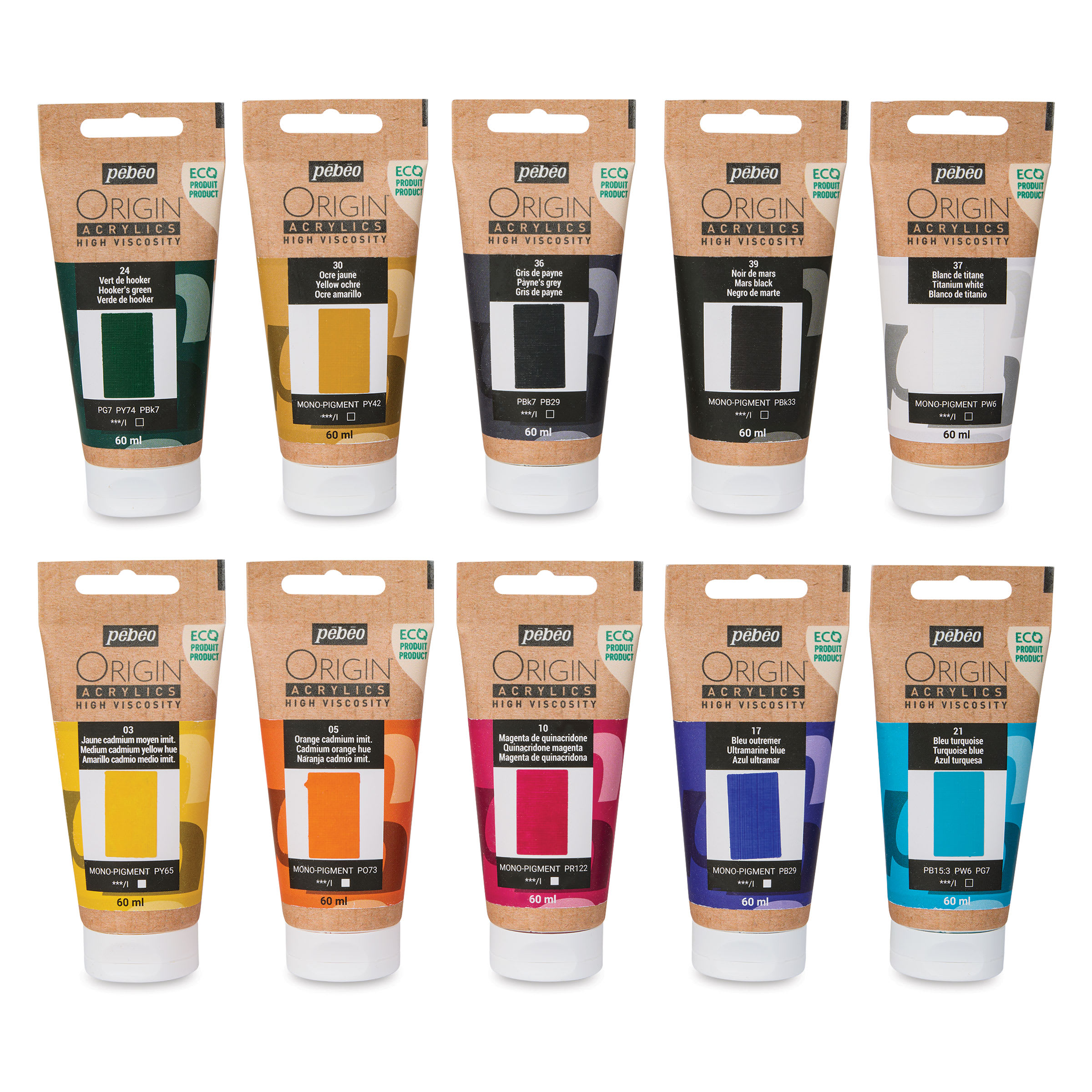 Pebeo Origin Acrylic Paint - Set of 10, Essentials, 60 ml