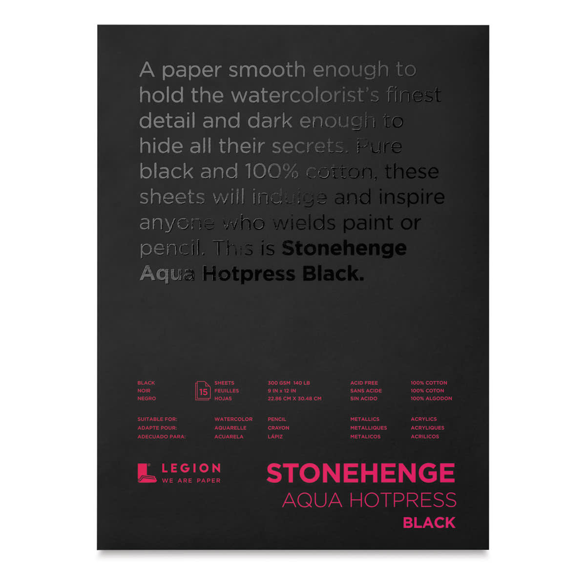 Legion Stonehenge Aqua Black Watercolor Paper Pad - 9" x 12", Hot Press, 15 Sheets