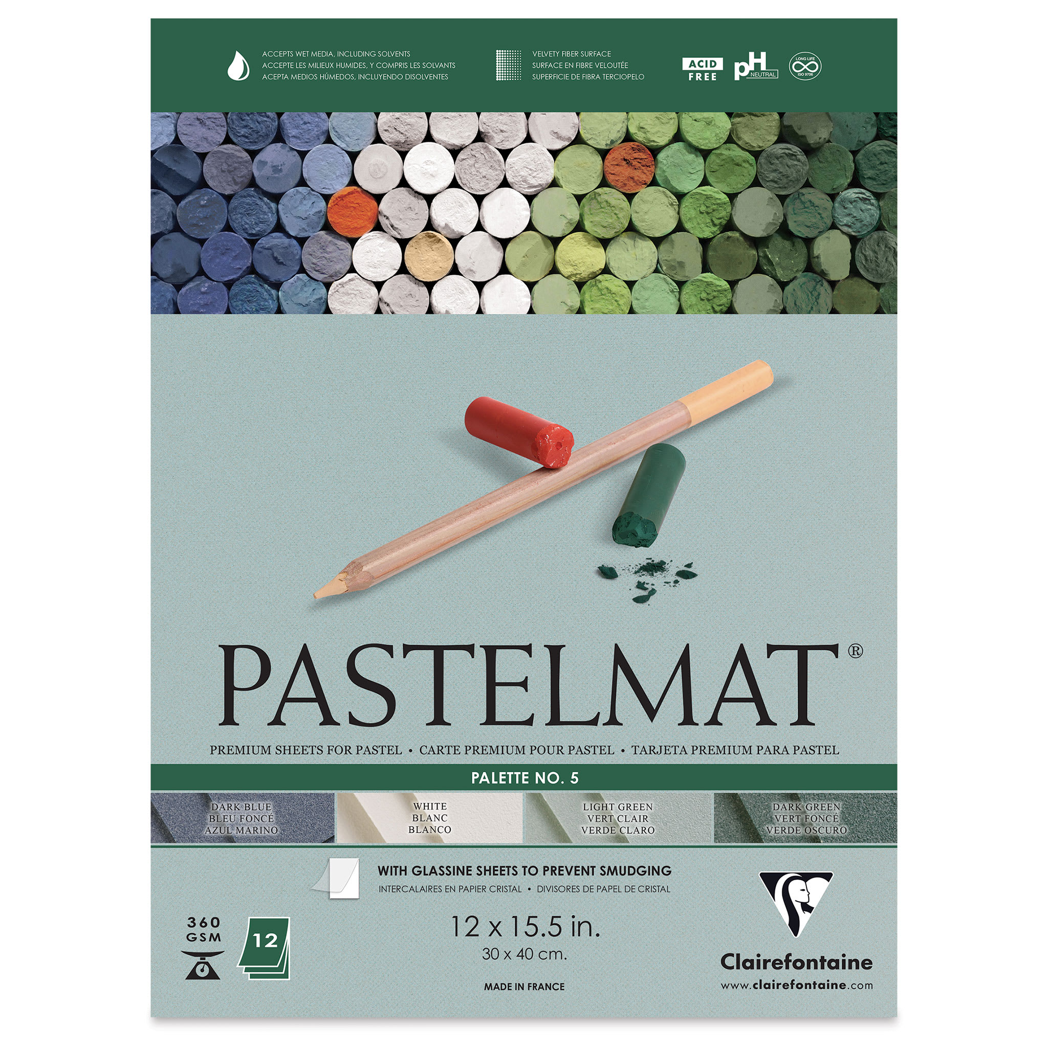 View Product DetailsClairefontaine Pastelmat Pad - 12" x 15-1/2", Palette No. 5, 12 Sheets - front of pad