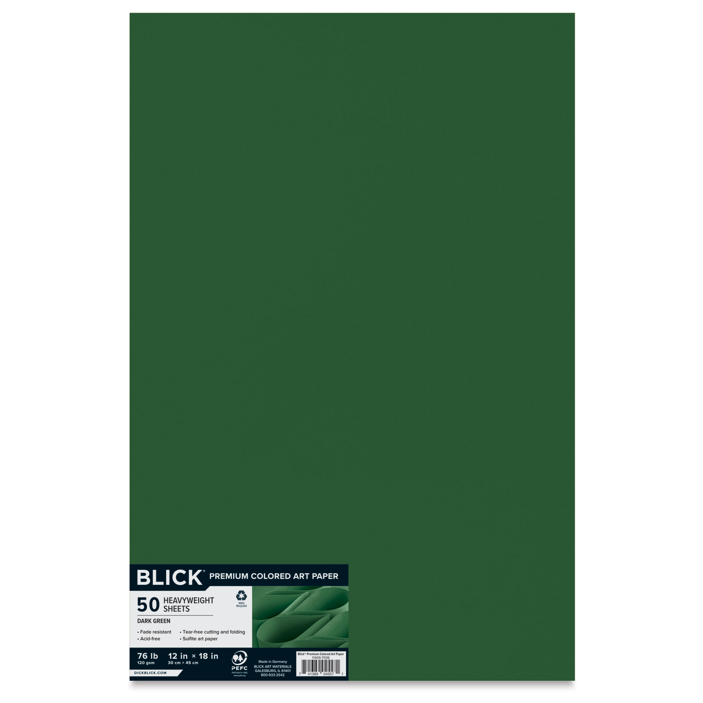 View Product DetailsBlick Premium Colored Art Paper - 12" x 18", Dark Green, 50 Sheets, front