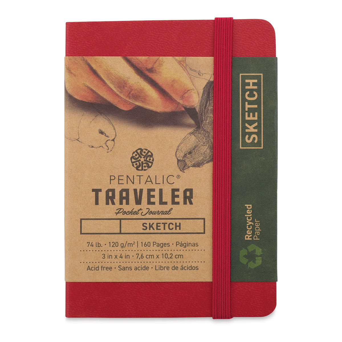 Pentalic Recycled Traveler's Sketchbook - 4-1/8" x 2-7/8", Red