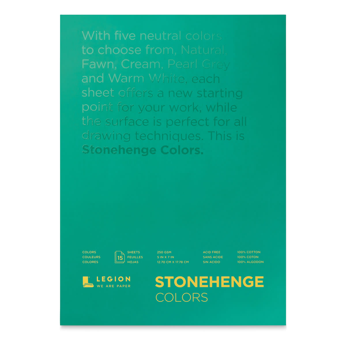 The Stonehenge Multi Pads contain three sheets each of five Stonehenge colors, including Warm White, Natural, Cream, Fawn, and Pearl Gray, so artists can flip to the desired color as needed.