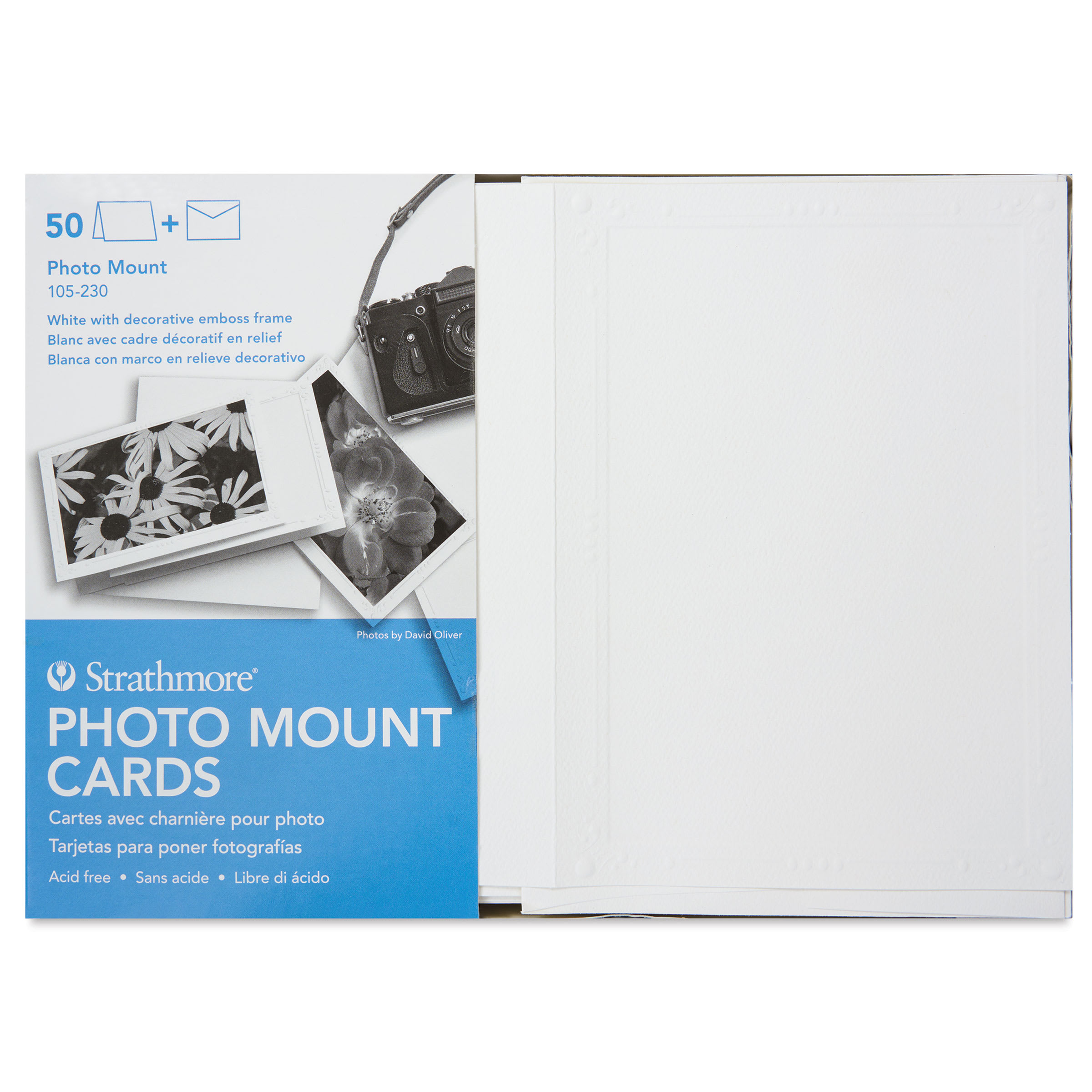 Strathmore Photo Mount Cards and Envelopes - White, Decorative Emboss, Pkg of 50