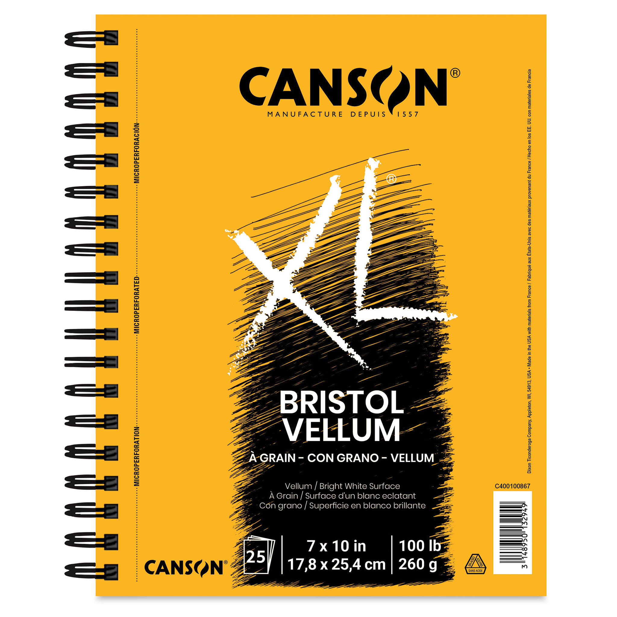 View Product DetailsCanson XL Bristol - Wirebound Pad, 10" x 7", Vellum, 25 Sheets