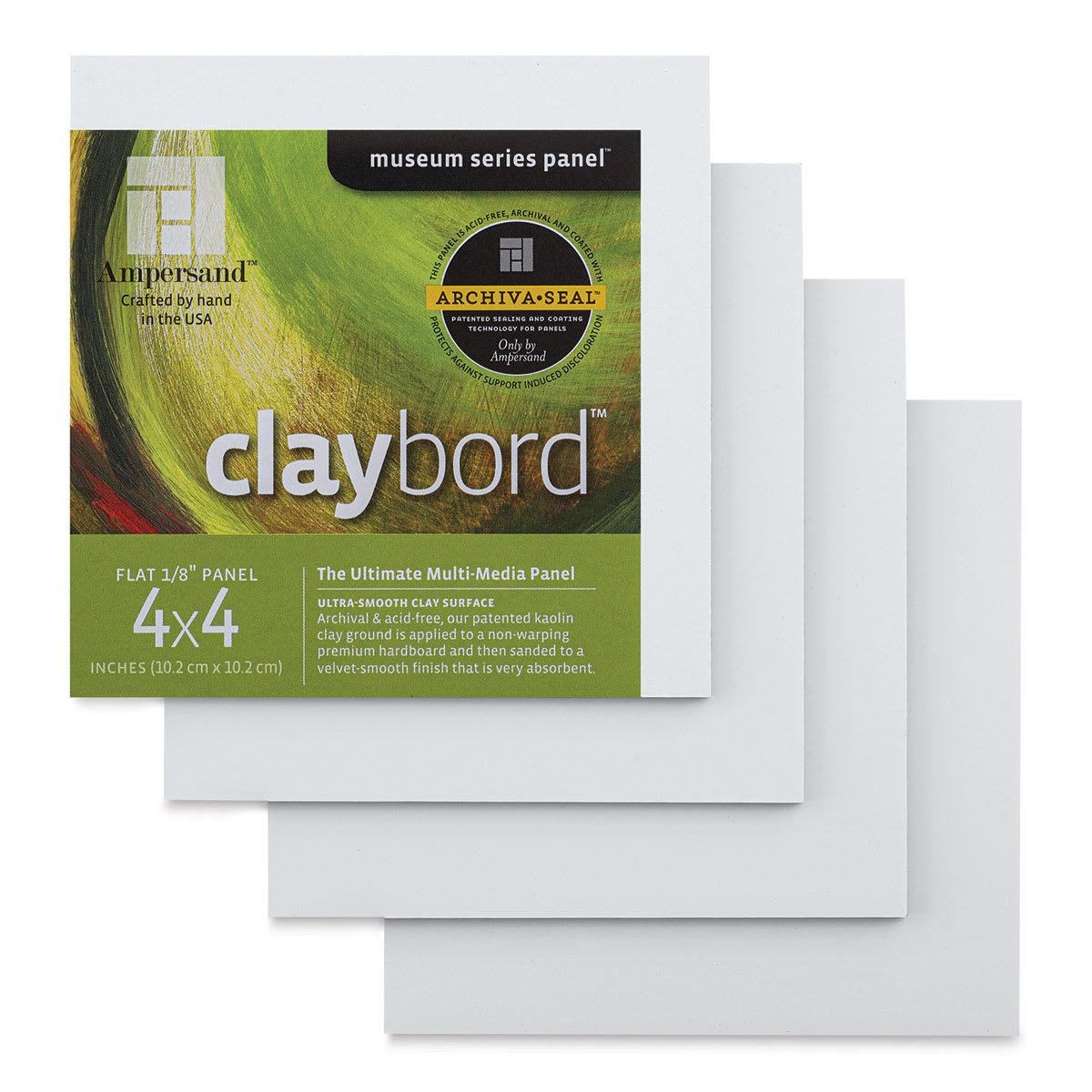 Ampersand Claybord - 4" x 4", 1/8" Flat, Pkg of 4