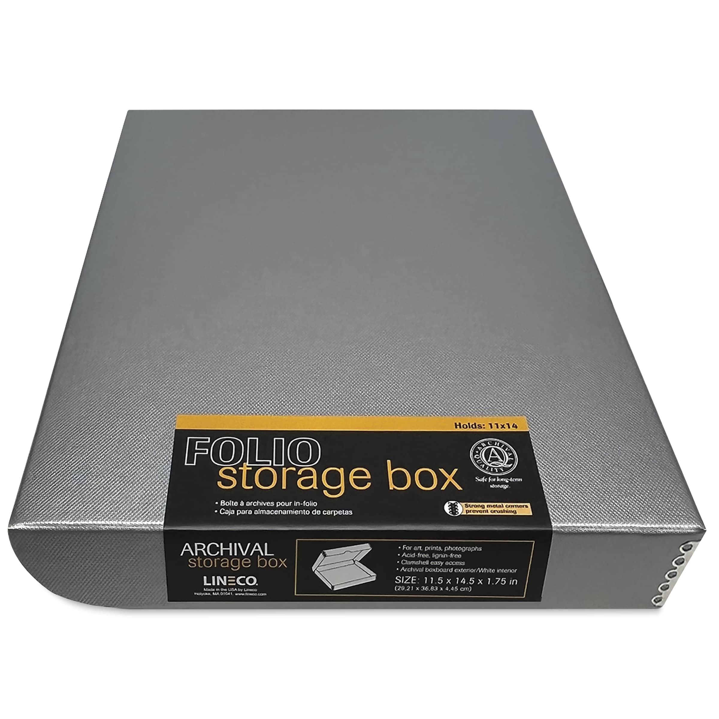 Lineco Folio Archival Storage Box - Metallic Silver, 11" x 14" with label