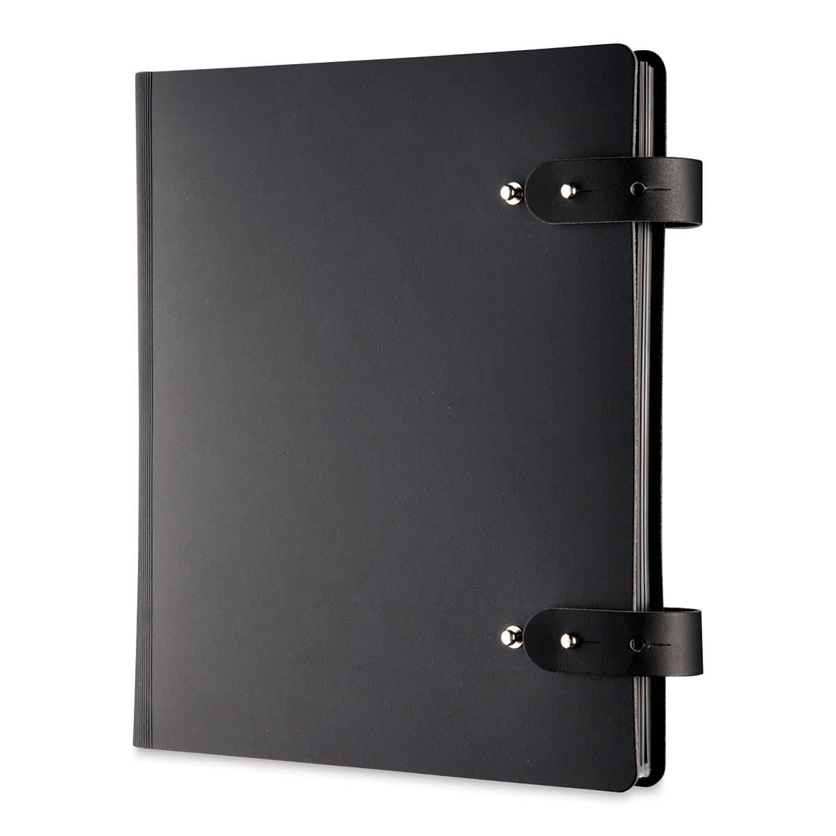 Prat Leather Spiral Presentation Book - 14" x 11", Double Tab Closure, Black, Portrait