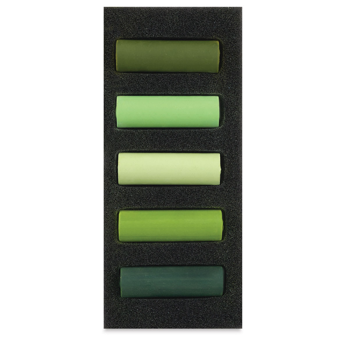 Rembrandt Soft Pastels Set of 5, Lush Greens, Half-Sticks. In package.