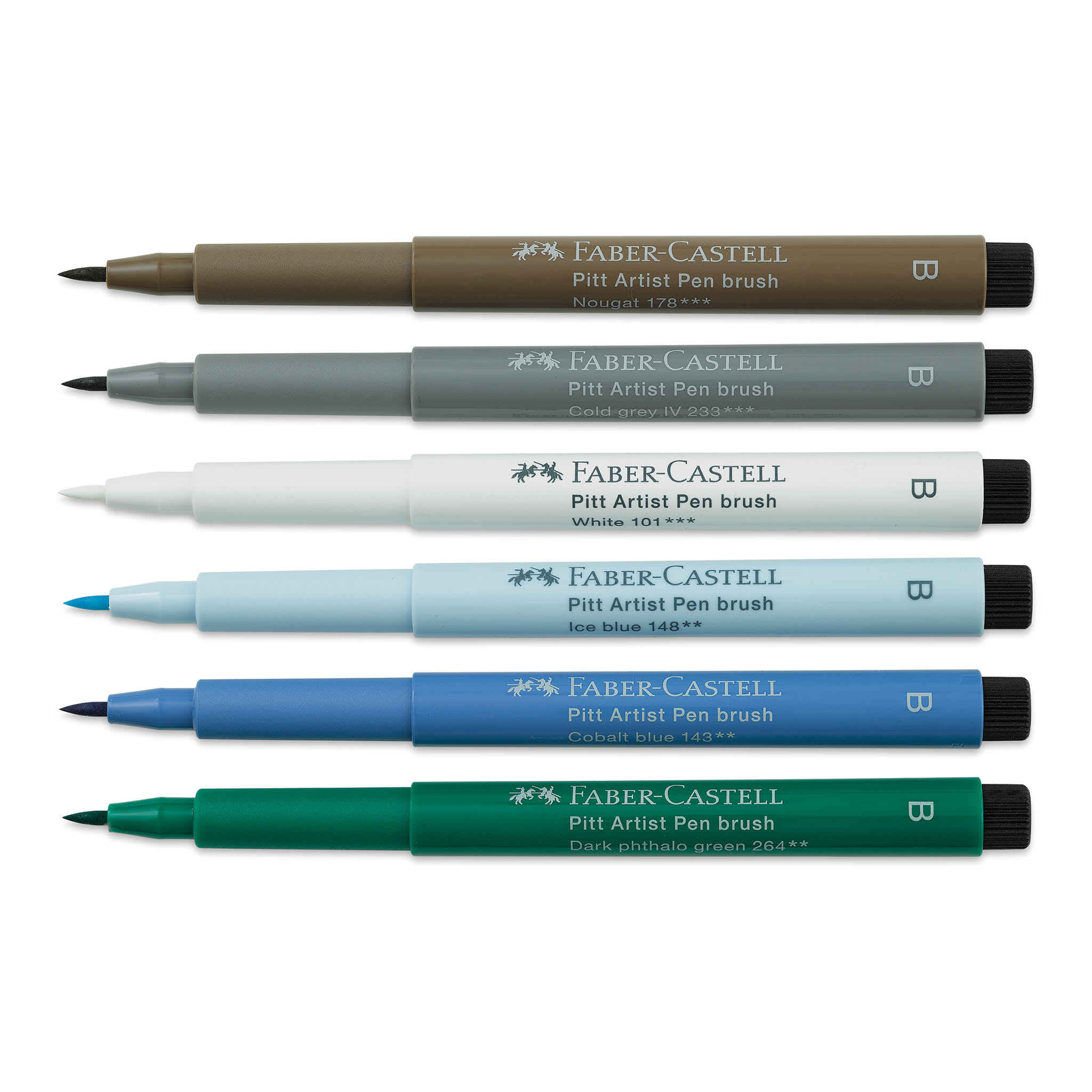 Faber-Castell Pitt Artist Pens- Winterlude, Set of 6, Brush Nib (pens with caps removed)