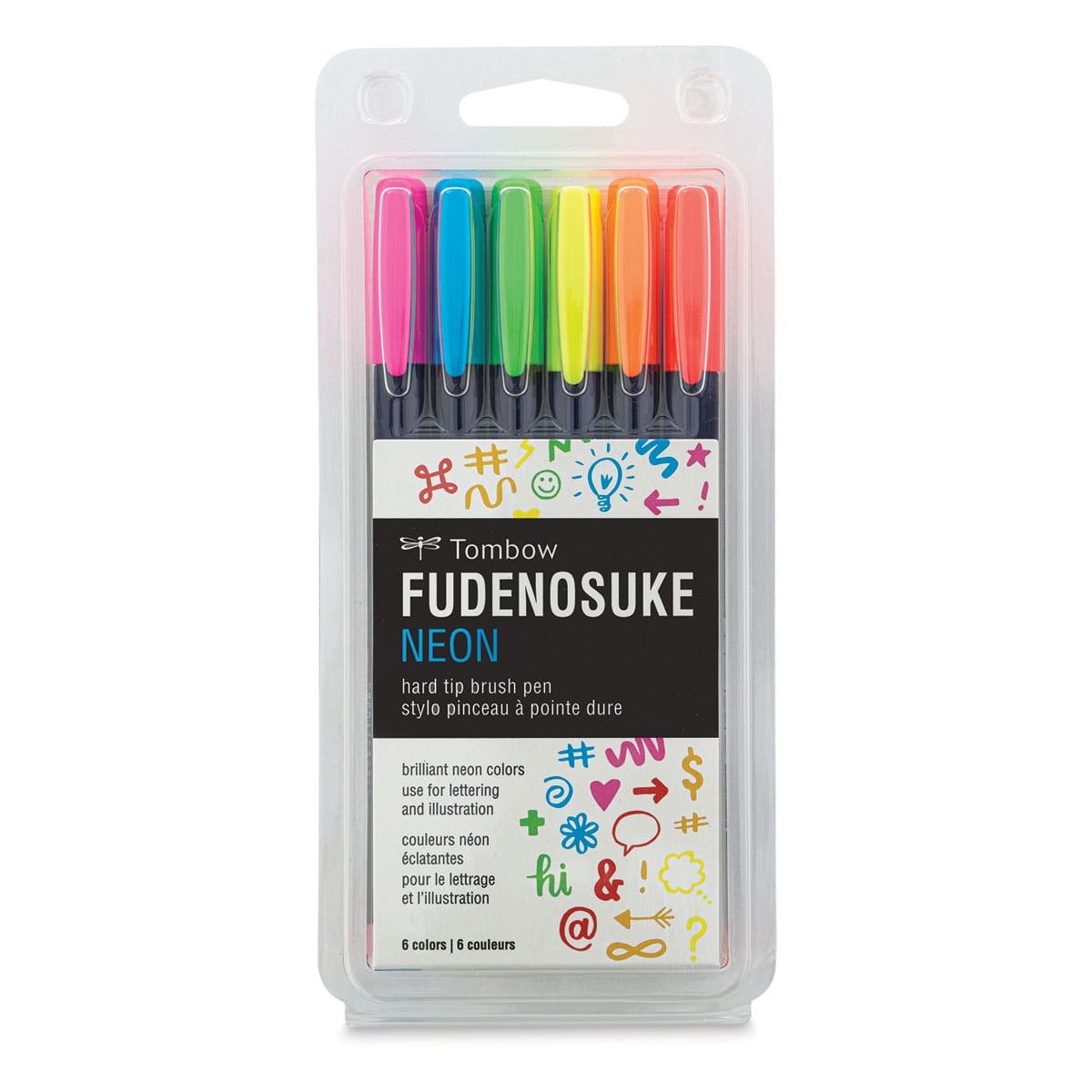 Tombow Fudenosuke Brush Pens - Set of 6, Neon Colors