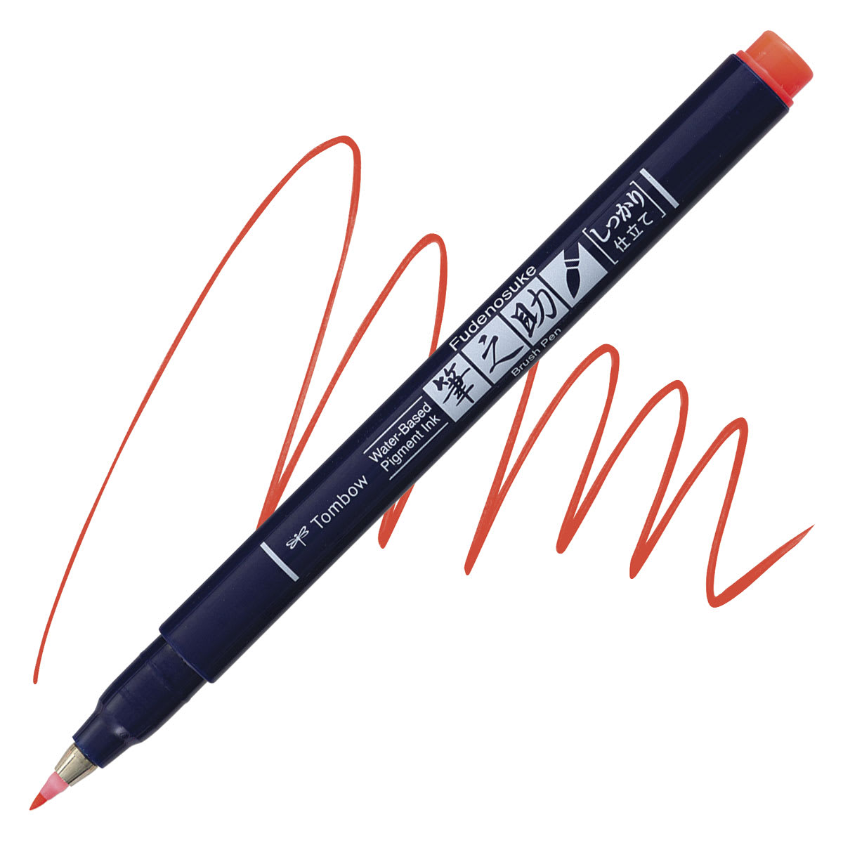 View Product DetailsTombow Fudenosuke Brush Pen - Red Neon, Hard Tip pen and swatch
