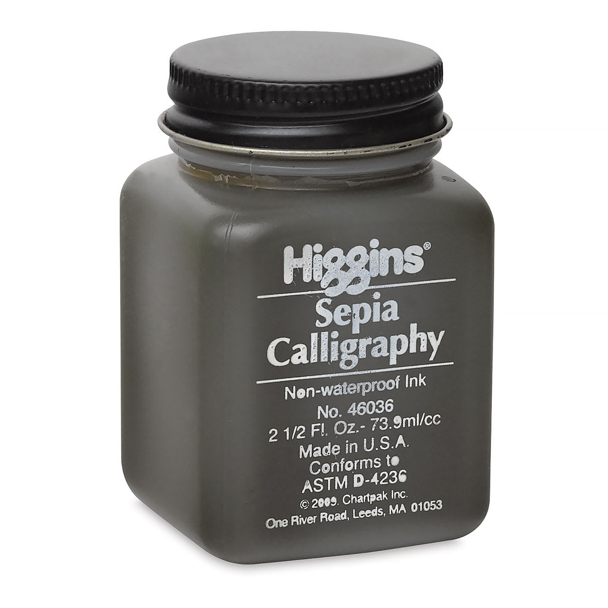Higgins Calligraphy Ink - Angled view of 2.5 oz bottle of Non-Waterproof Calligraphy Ink