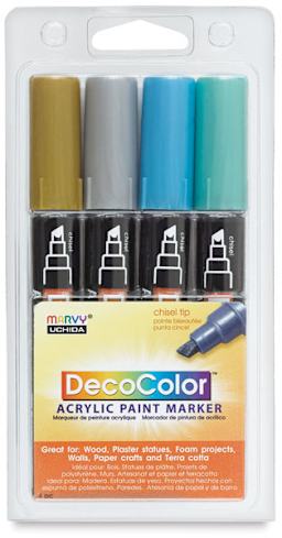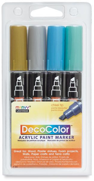 Decocolor Acrylic Paint Marker Set - Set of 4, Metallic Colors, Chisel