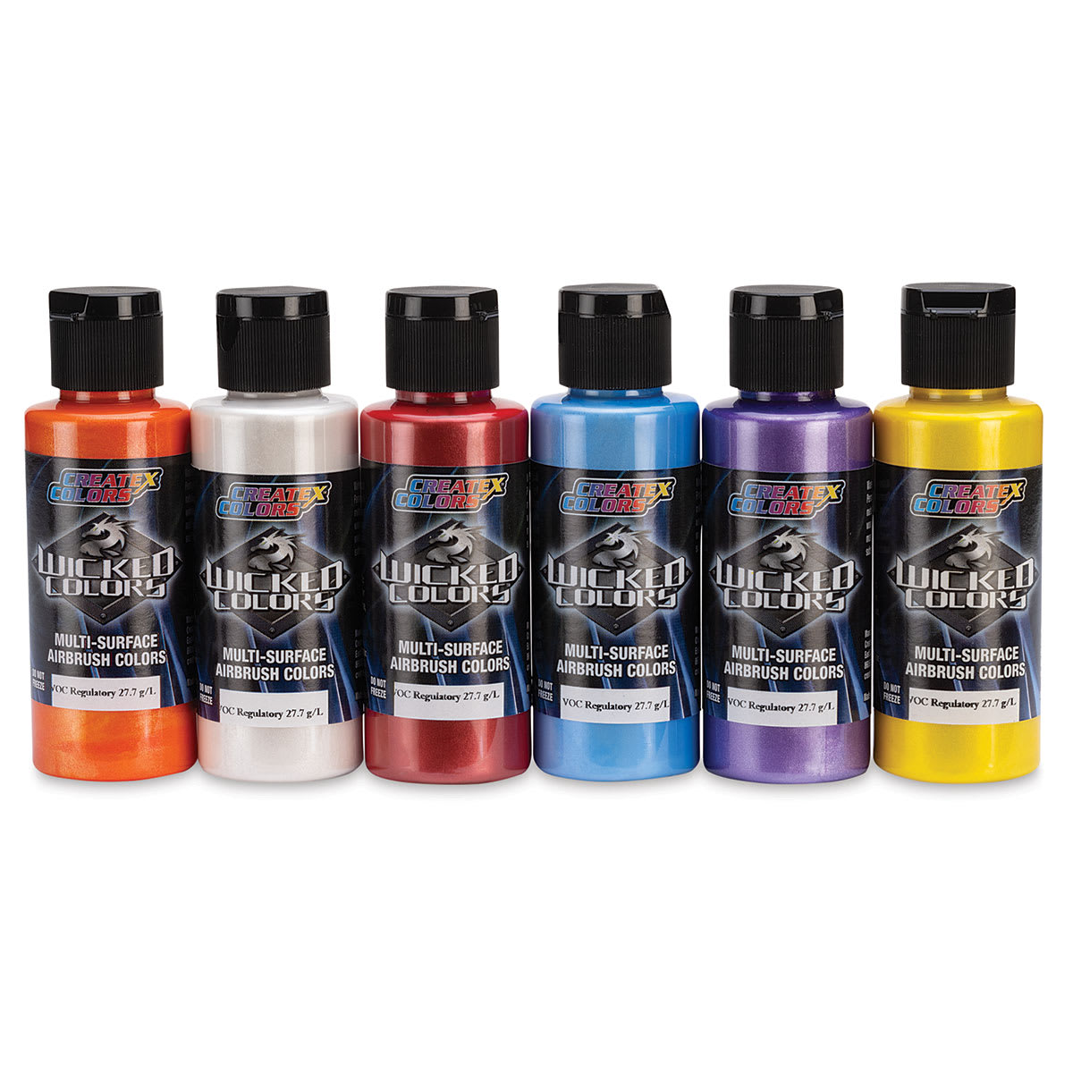 Createx Wicked Colors Airbrush Color - Opaque Essential Pearlized, Set of 6, 2 oz, Bottles