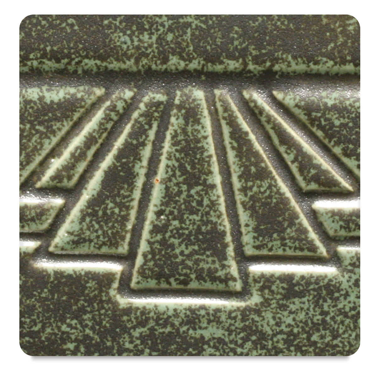 View Product DetailsAmaco Potter's Choice Glazes - Art Deco Green, PC-48. Color sample, light-dark color contrast.