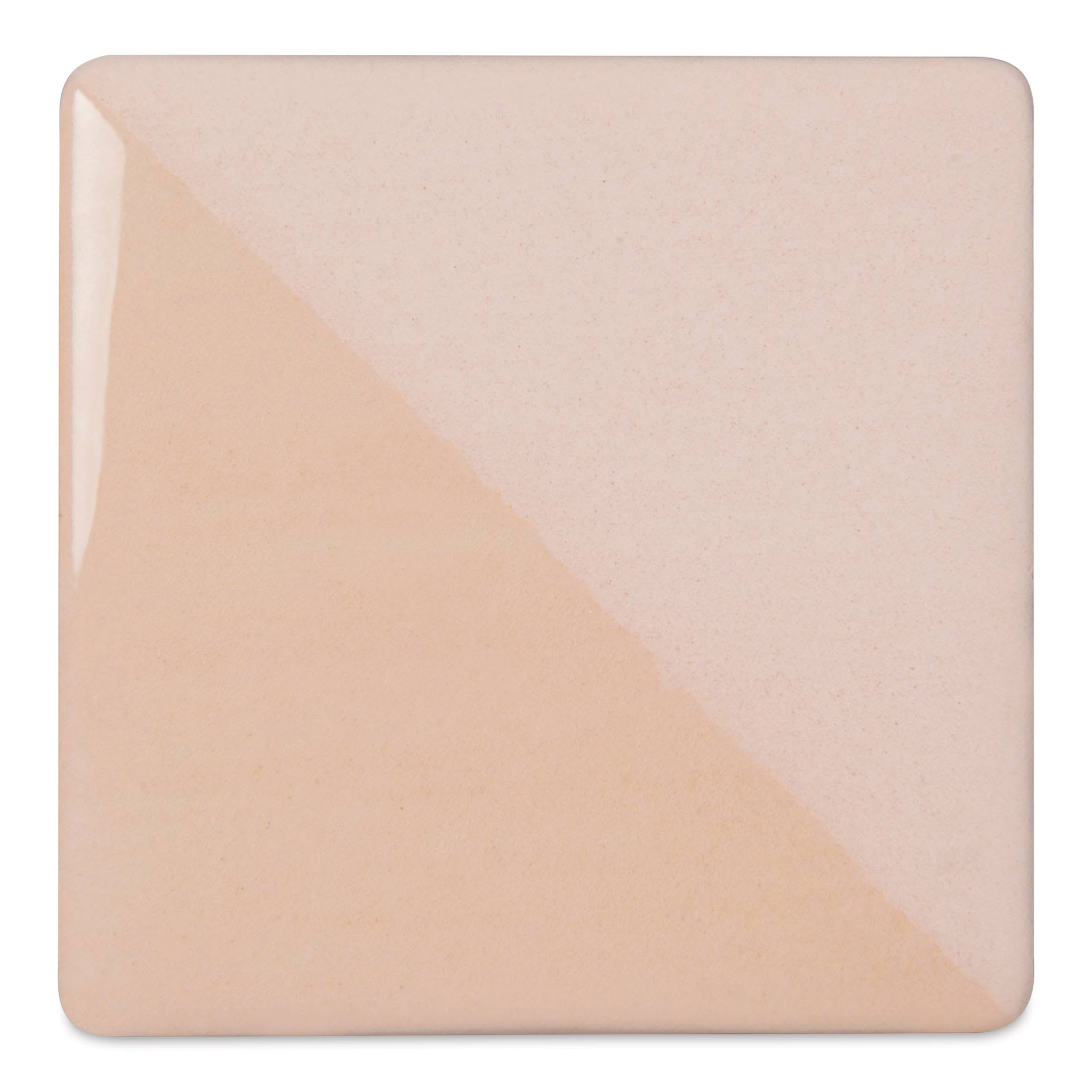 View Product DetailsSpeedball Ceramic Underglaze - Cream, Opaque, fired on white clay bisque tiles, half covered in Speedball Clear Glaze, fired to cone 05