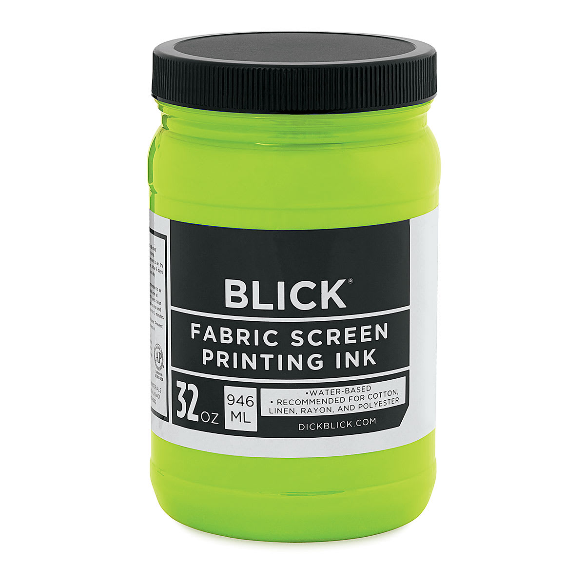 Blick Water-Base Acrylic Textile Screen Printing Ink - Fluorescent Green, Quart