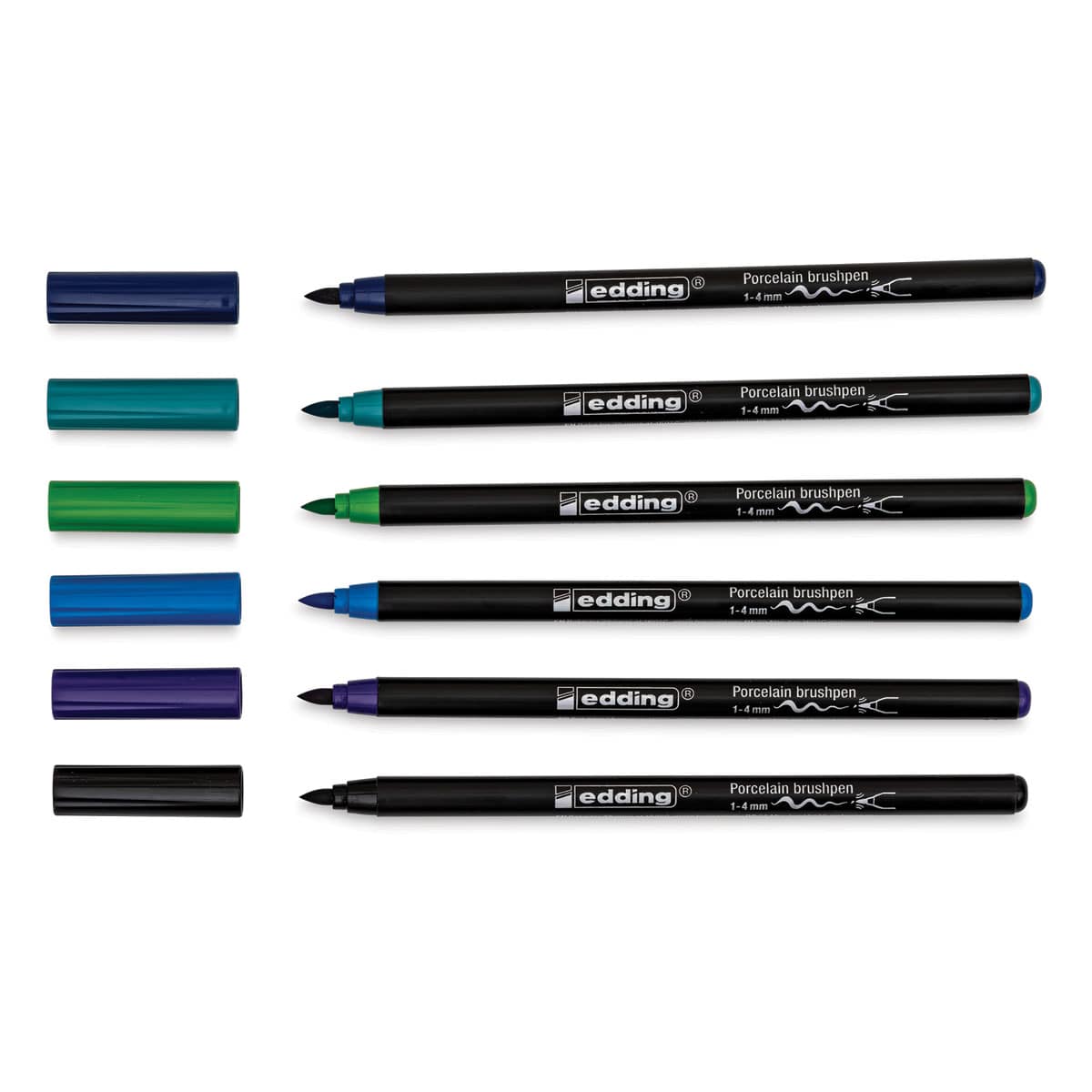 View Product DetailsEdding 4200 Series Porcelain Brush Pens - Set of 6, Cool (Pens with caps off)