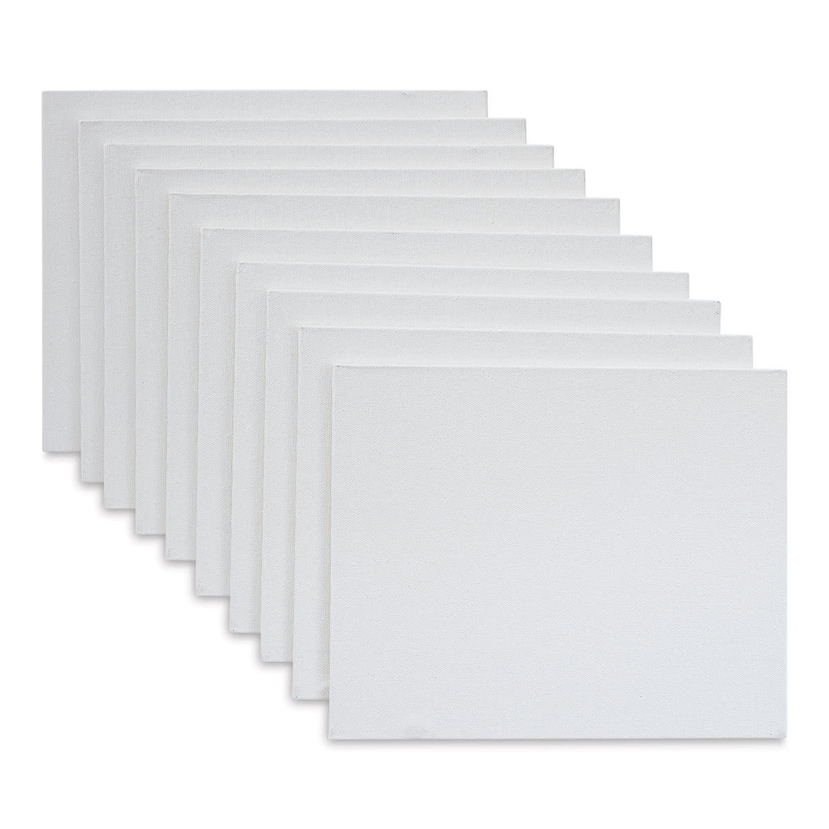 View Product DetailsStrathmore 300 Series Cotton Canvas Panel Pack - 8" x 10", Package of 10 (Out of packaging, Front of canvas shown)