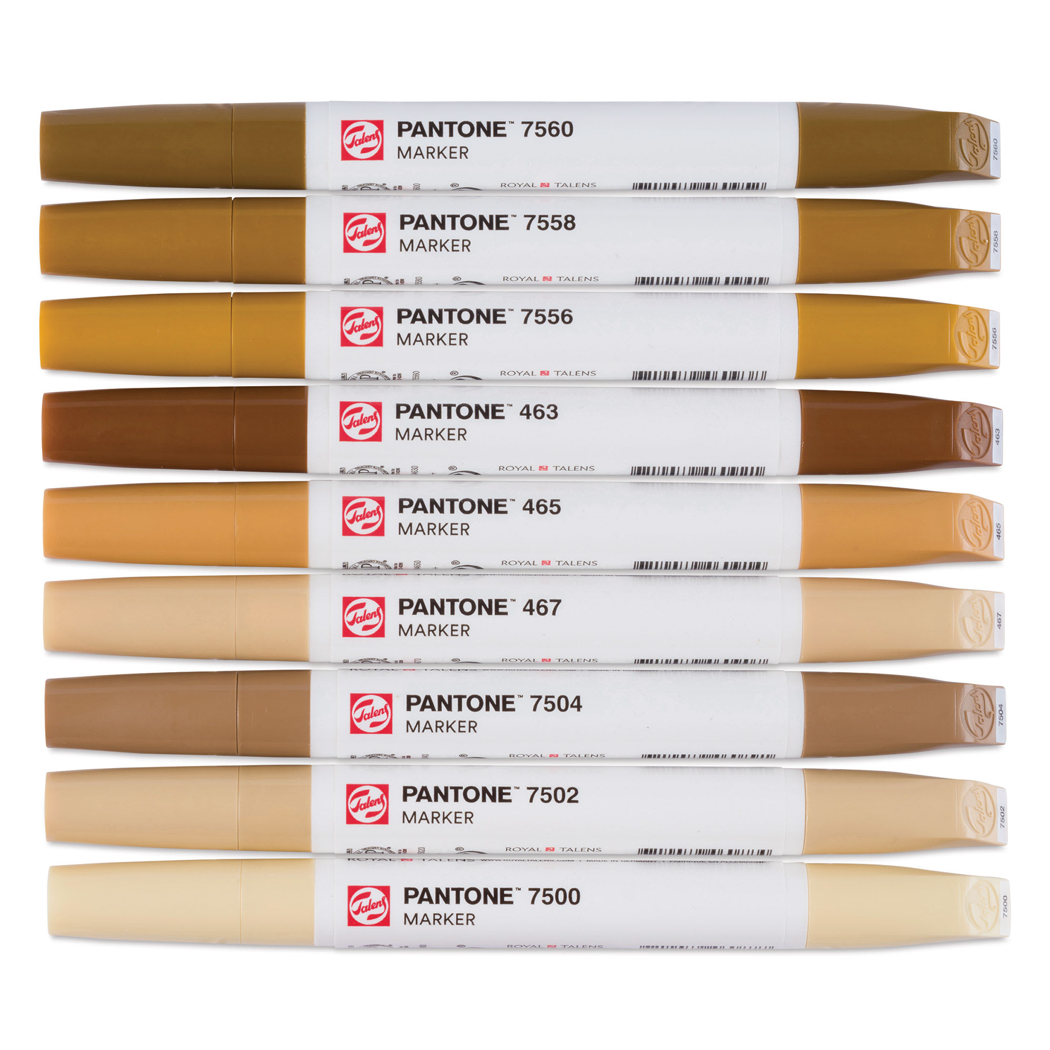 Pantone Dual Tip Markers - Brown, Set of 9, markers laid out with caps on