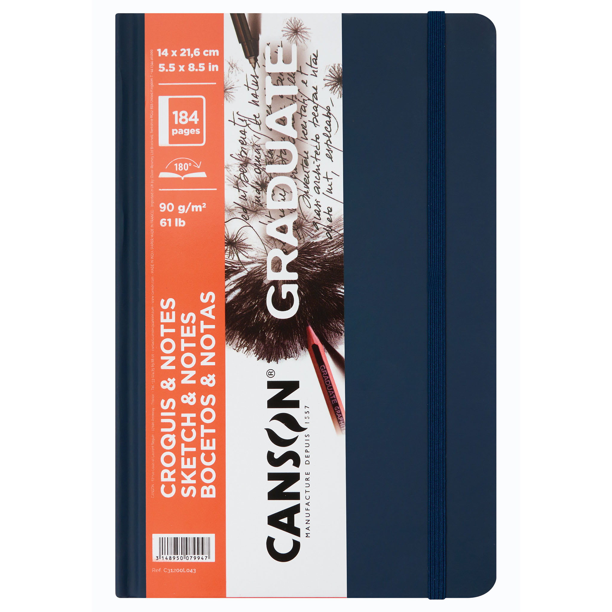 Canson Graduate Sketch and Note Hardcover Book - Dark Blue, 5-1/2" x 8-1/2", 92 Sheets