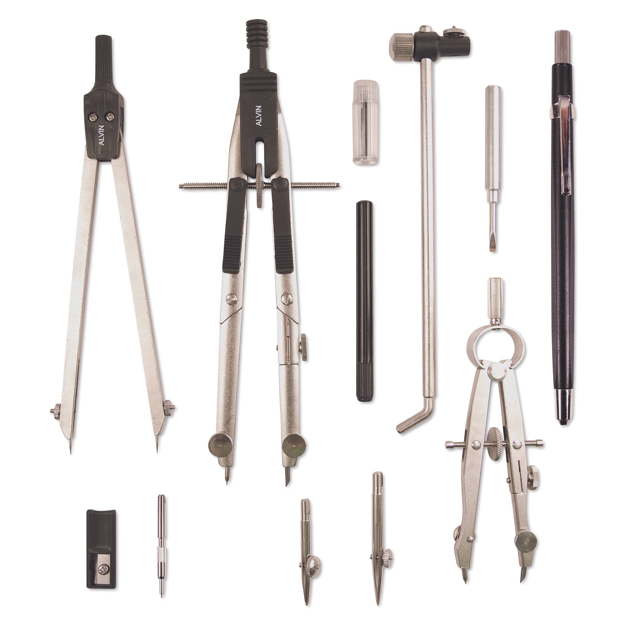 This high-quality Alvin Jet-Bow Compass Set contains all the essentials you need for precise and accurate drafting and drawing. Included in the set are a 6" speed compass and a 4-1/2" bow compass with an interchangeable pen, replacement points, pencil and divider accessories; a 6" beam bar; slide co...