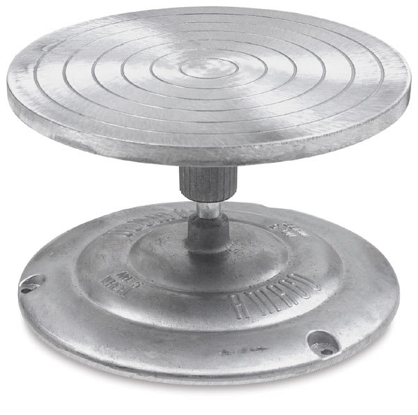 Perfect for modeling, finishing or decorating, this 7" wheel is marked with concentric circles and rotates smoothly on a ball bearing and is weighted at the rim for greater momentum. A grooved wheel shank accommodates a small round belt for mechanization. Use of setstone bats permits continuous use.