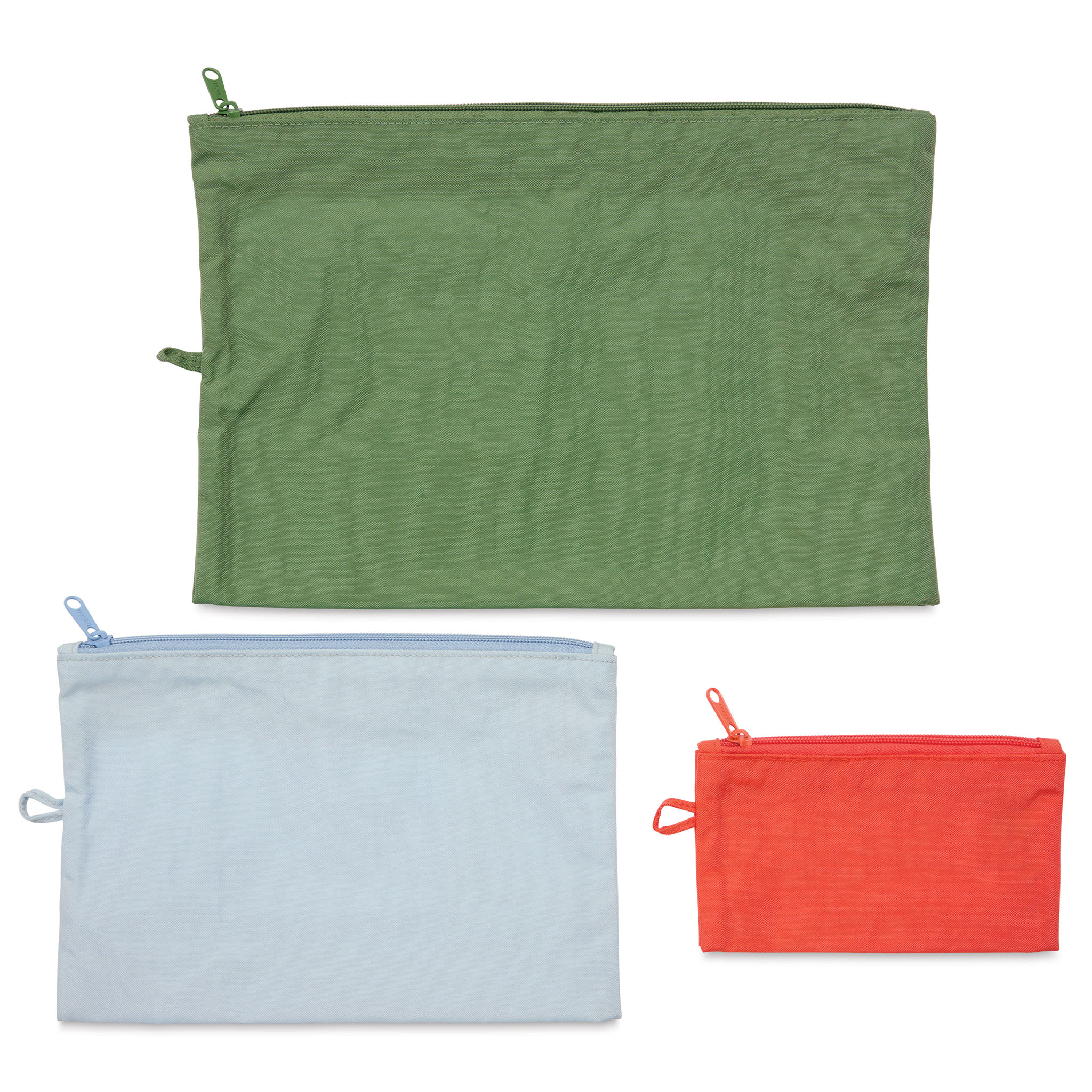 The Baggu Go Pouch Set makes it easy to keep your belongings organized when on the go. These zippered pouches are made of 100% heavyweight nylon and come in stylish colors. They have a gusseted design that allows them to lay flat or expand to fit your belongings. The pouches are machine-washable. ...