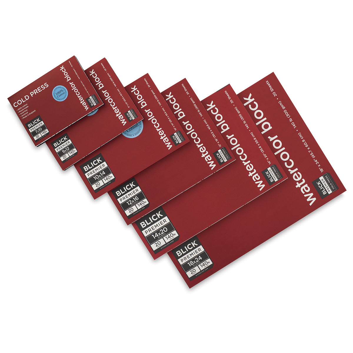 Made on a traditional cylinder mould in a European mill, the paper in Blick Premier Watercolor Blocks is both internally and externally sized for optimum performance. Glued on all four sides, these blocks are great for painting on location. This professional-quality paper is made from 100% cotton....